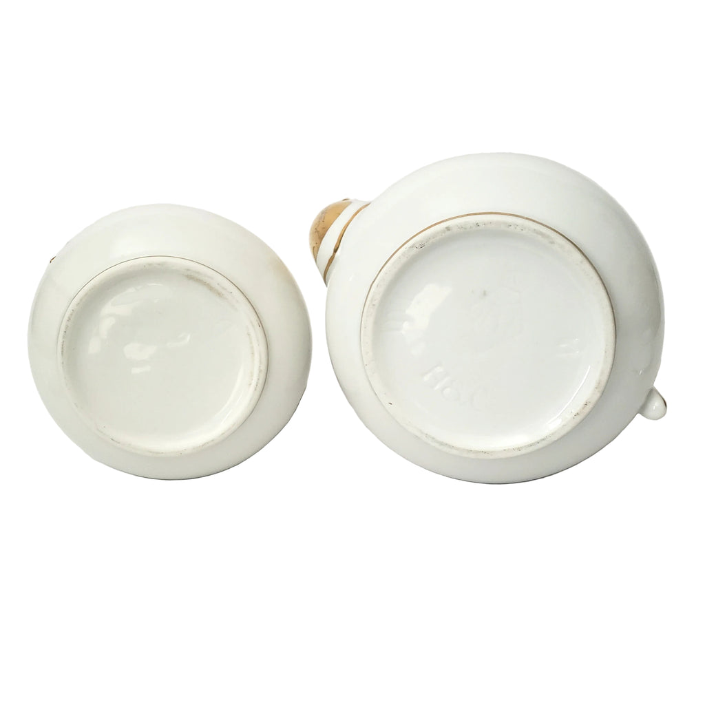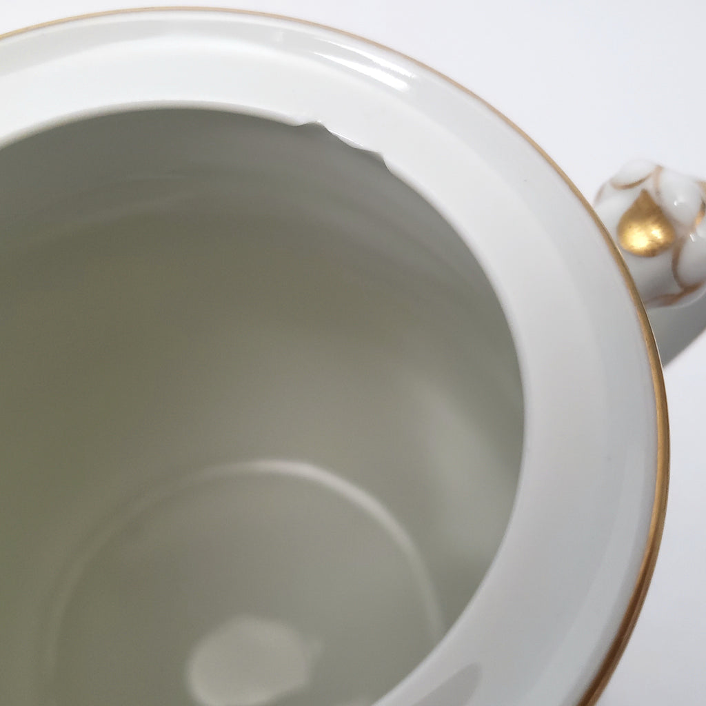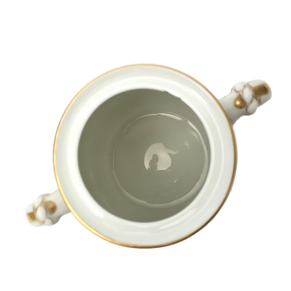 Antique Porcelain Teapot & Sugar Bowl Set Gold Metallic Trim 19th Century