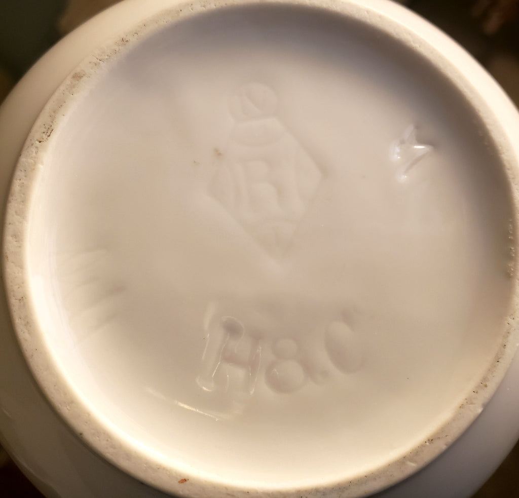 Maker Marks: On teapot only: Impressed mark - Possibly H & C or H 8 C near the bottom and above an unreadable Diamond Registry Mark.
