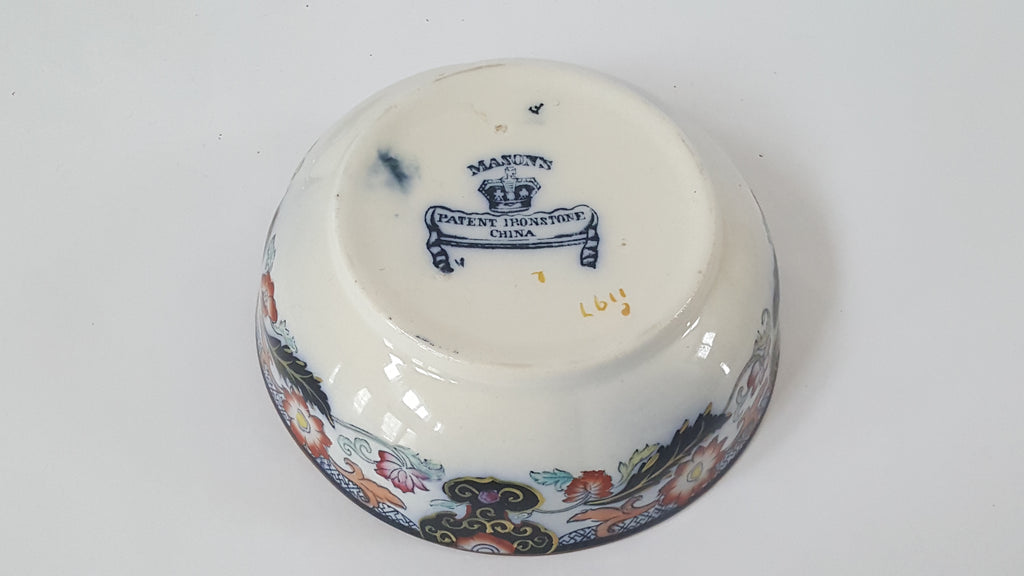Product Description: Using sponge bowls were common during the Victorian period. Many kept their bathroom supplies such as sponge bowls, towel horses, washstands and chamber pots nearby in their bedroom. This wonderful 19th century Mason's Patent Ironstone China - 3 Piece English Sponge Bowl is a beauty. This was acquired from an estate auction and is believed to be the "Table and Vase" pattern. This rare collectible is stamped on the bottom in blue; Mason's Patent Ironstone China and in dark yellow/gold C1197.