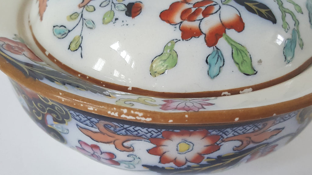 Early Mason's Ironstone China - English Sponge Bowl w/ Lid - Table and Vase Design