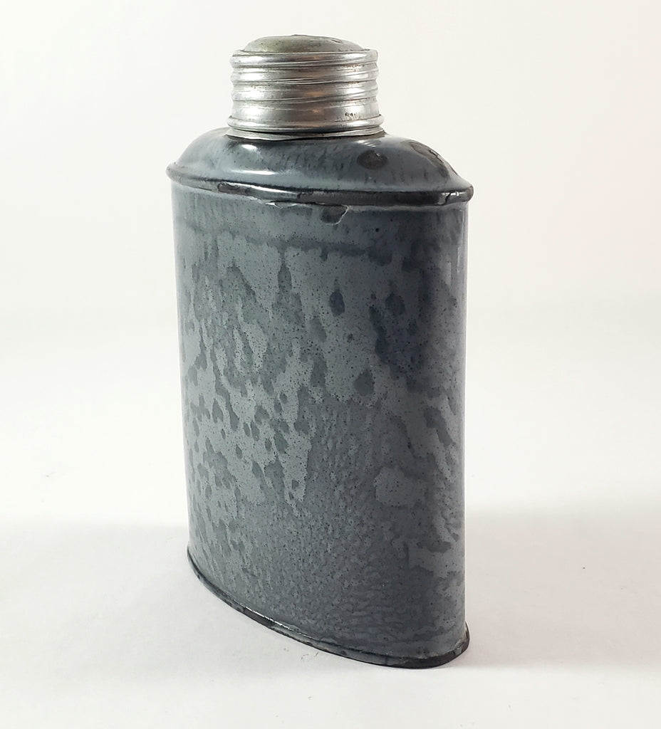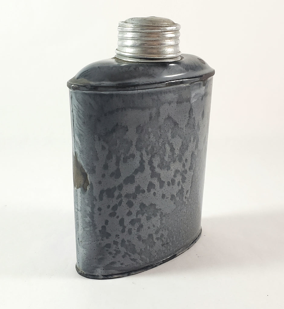 Antique Gray Graniteware Enamelware Flask 18 Fluid Ounce