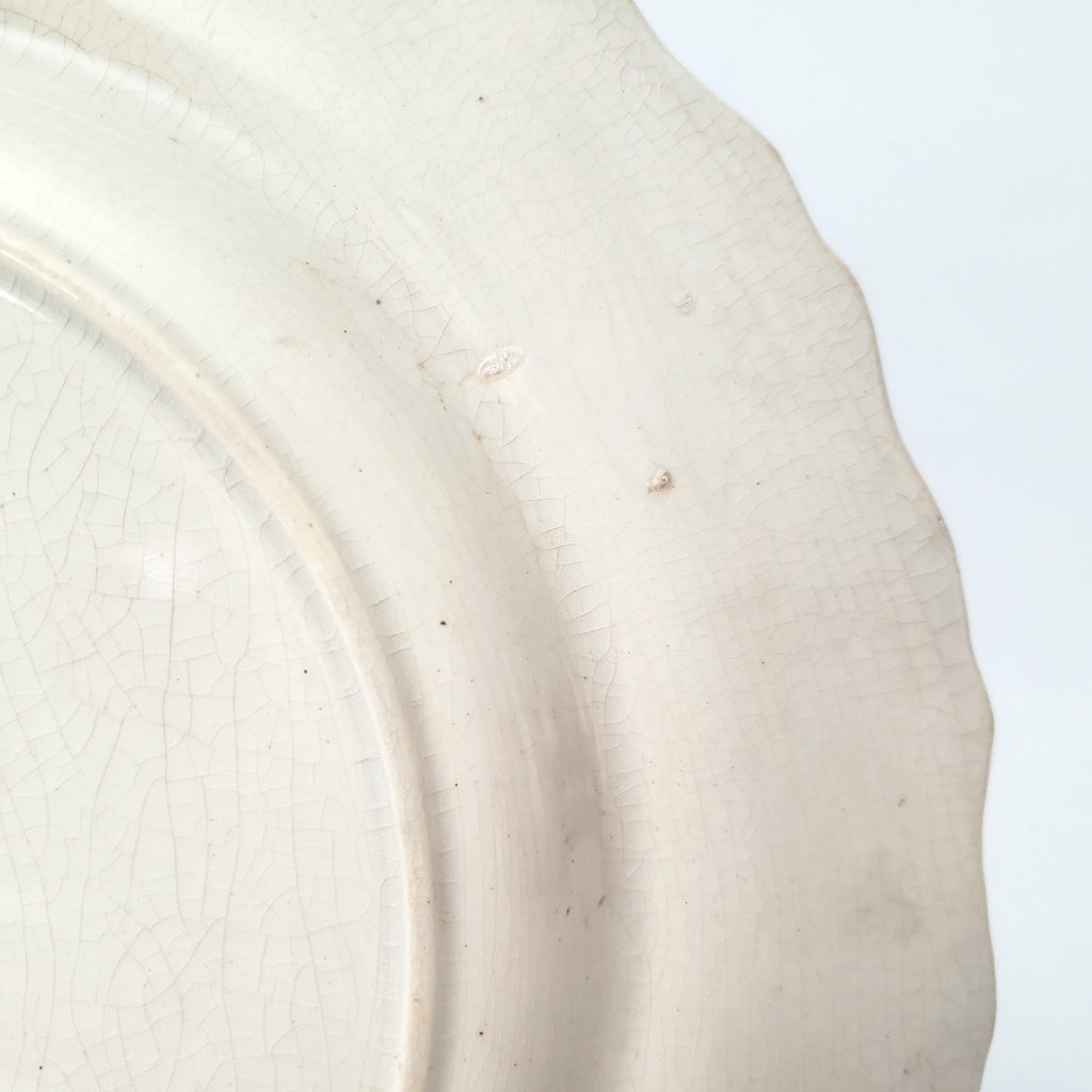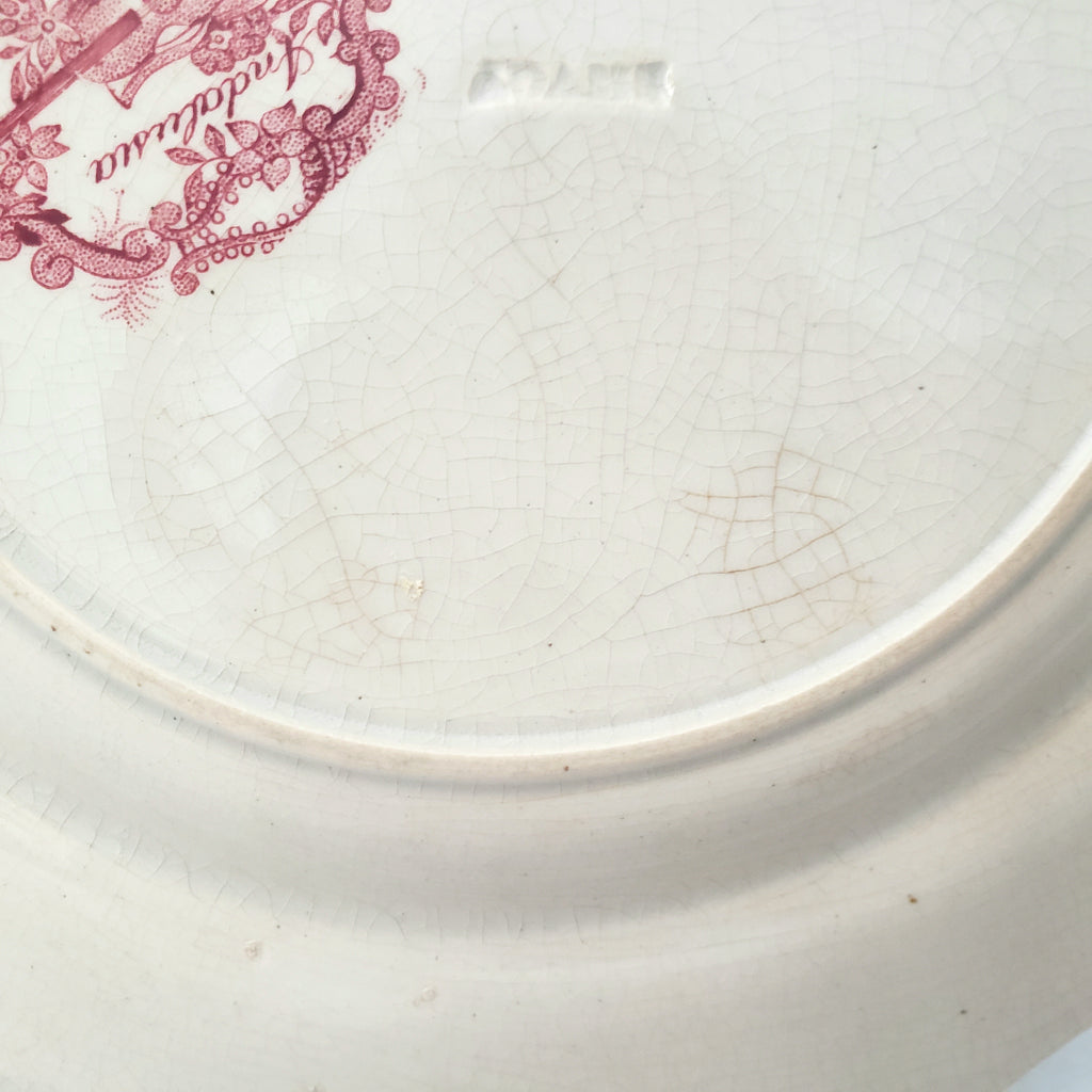 Condition: Previously owned – used. Condition is commensurate with age and use. Over 180 years old - considered very good condition. Rim is smooth free of chips or cracks. All over crazing is present on front and back. Colors are still vibrant. A few scratches (2-3) on red scene along with some glaze pops. The ½” scratch can be scene moreso when turned towards the light (as shown with a light source pointed on it directly).
