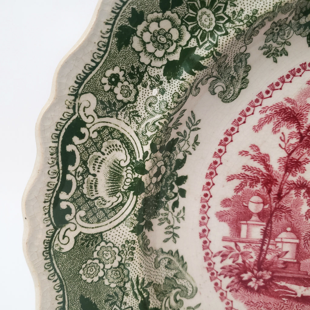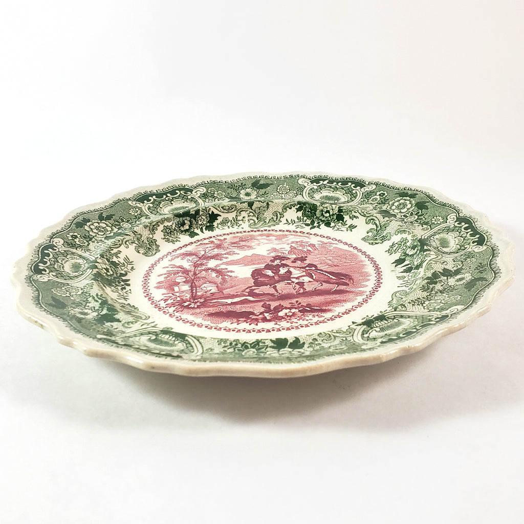 Antique Transferware 8” Plate Green & Red Bi-Color ANDALUSIA by Adams England