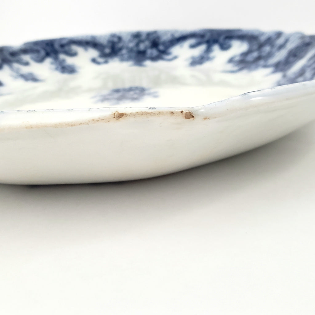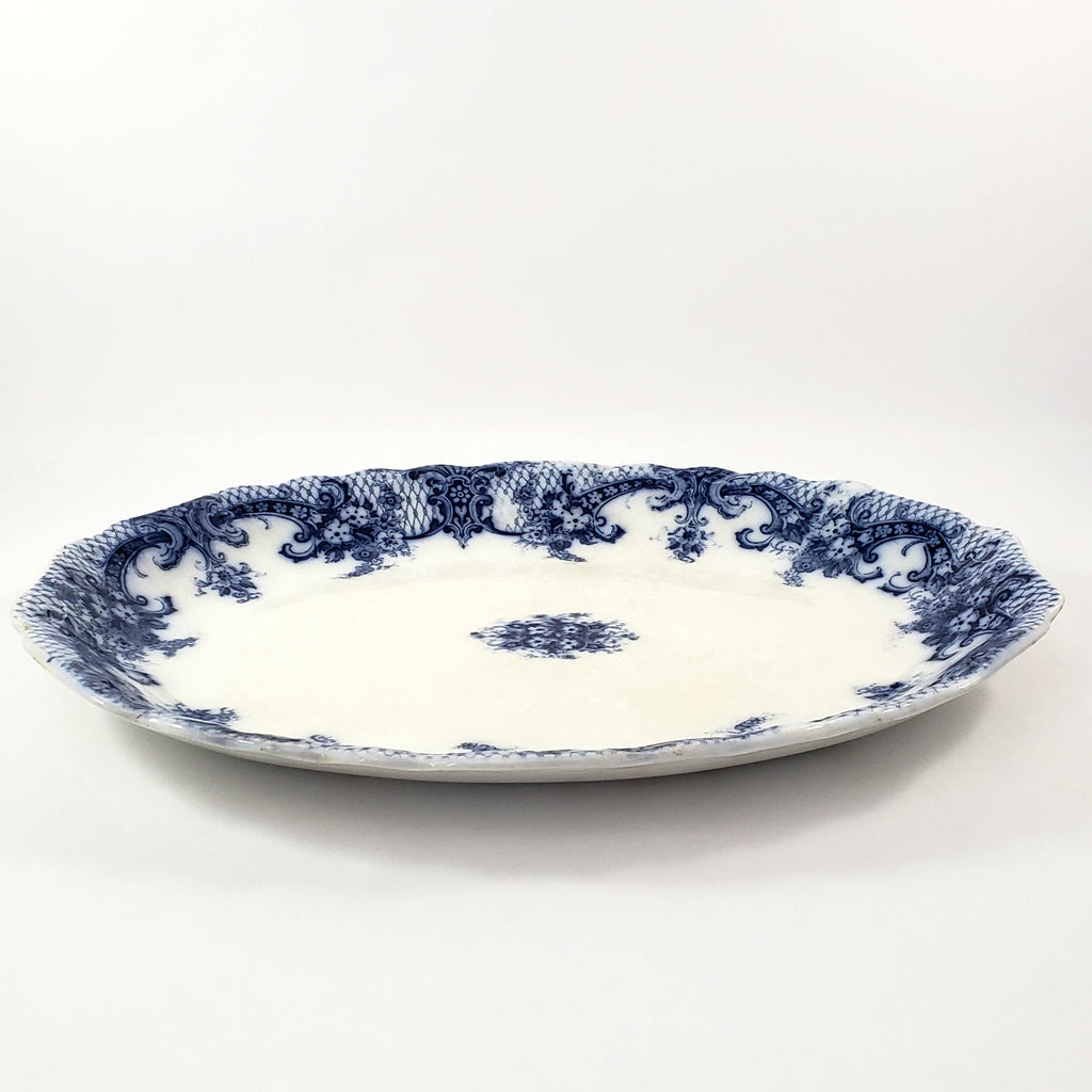 Large Antique Oval Flow Blue Serving Platter 17 ¾” ROYAL New Wharf Pottery Co. England