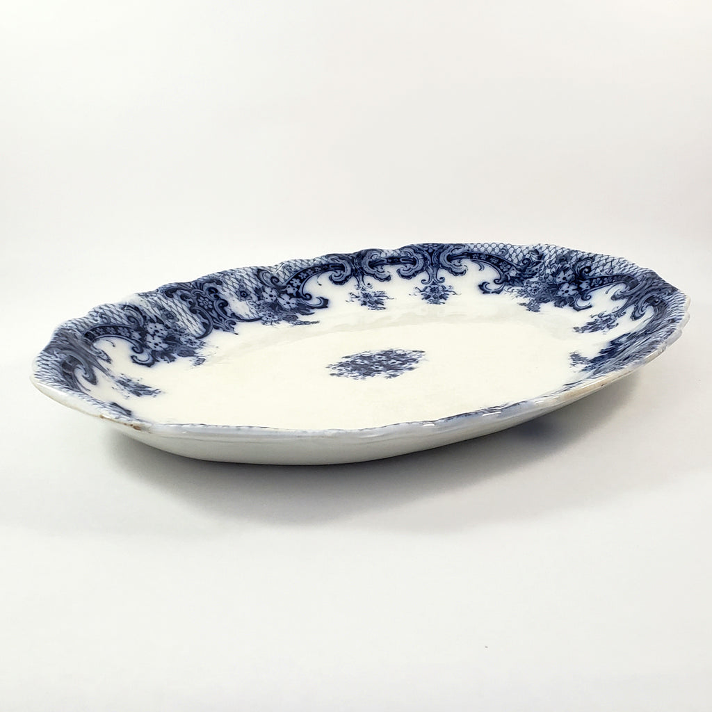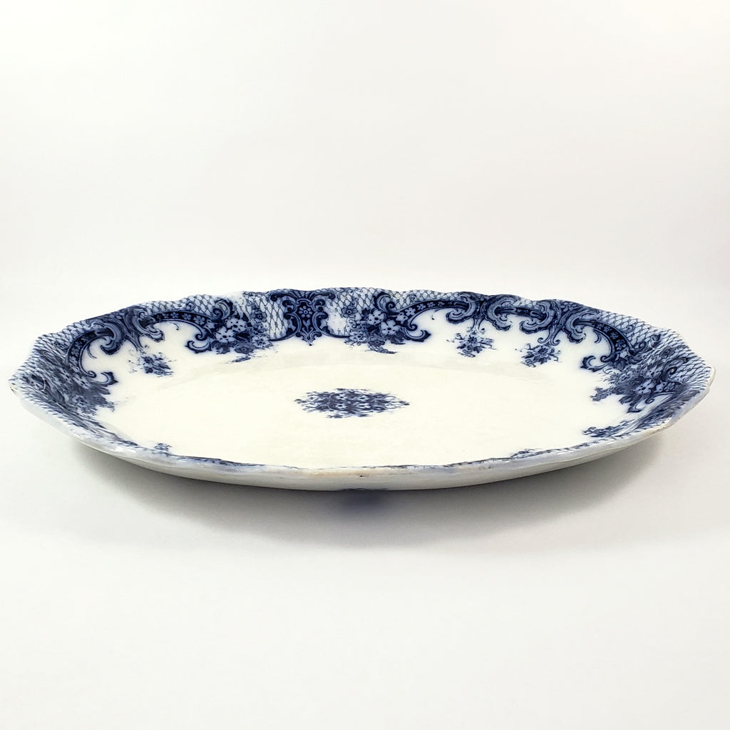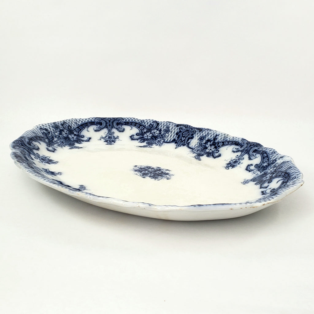 Large Antique Oval Flow Blue Serving Platter 17 ¾” ROYAL Pattern New Wharf Pottery England
