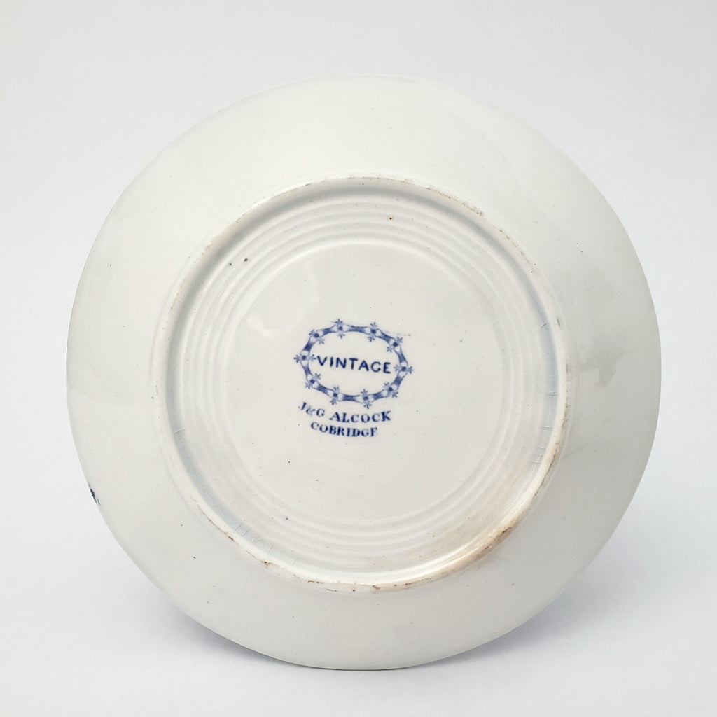 Maker Marks: On saucer: Vintage, J & G Alcock, Cobridge (printed in blue)