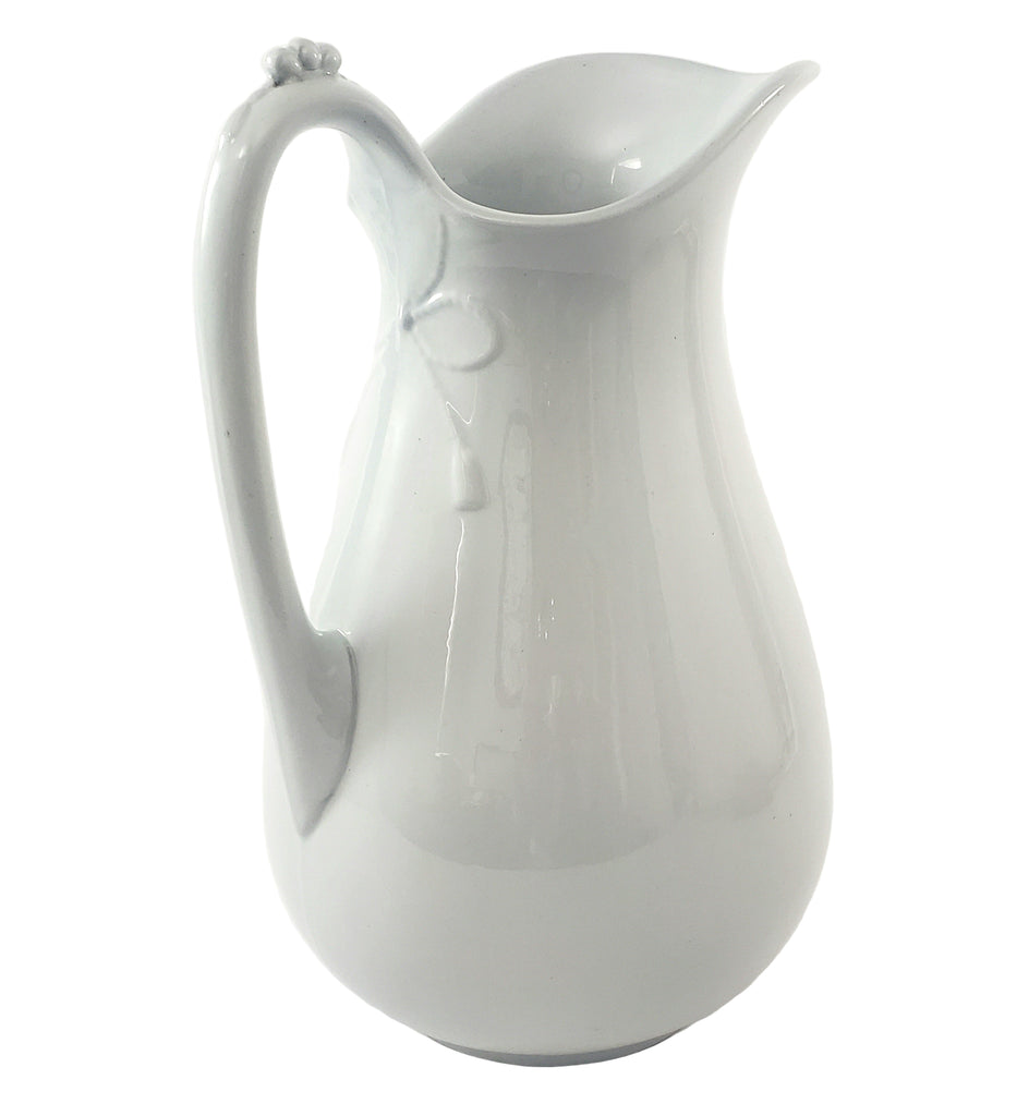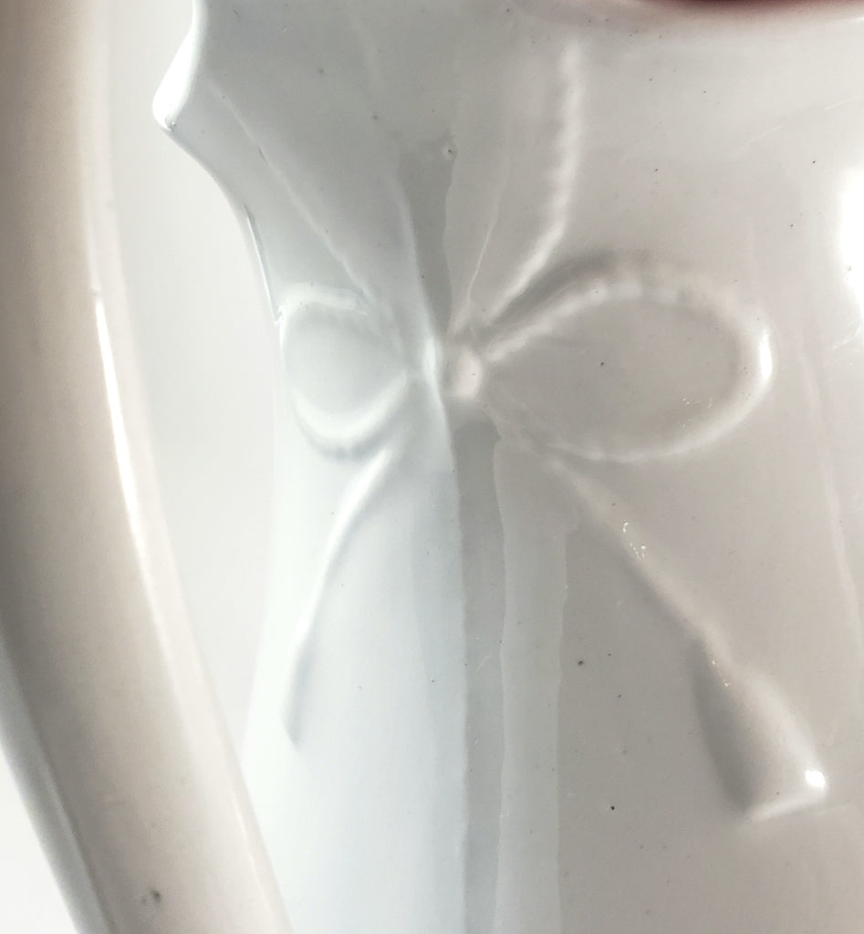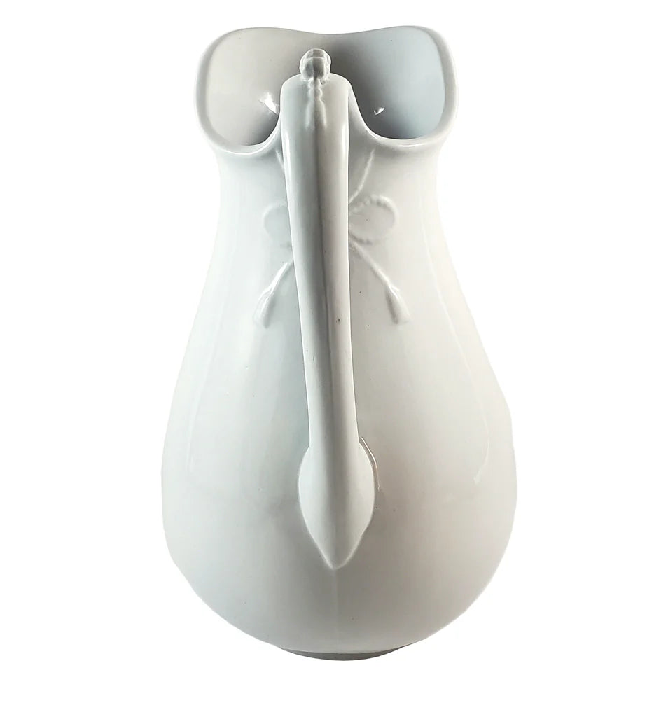 Large Antique White Ironstone Pitcher Bow & Tassel 12" by Burgess & Goddard England