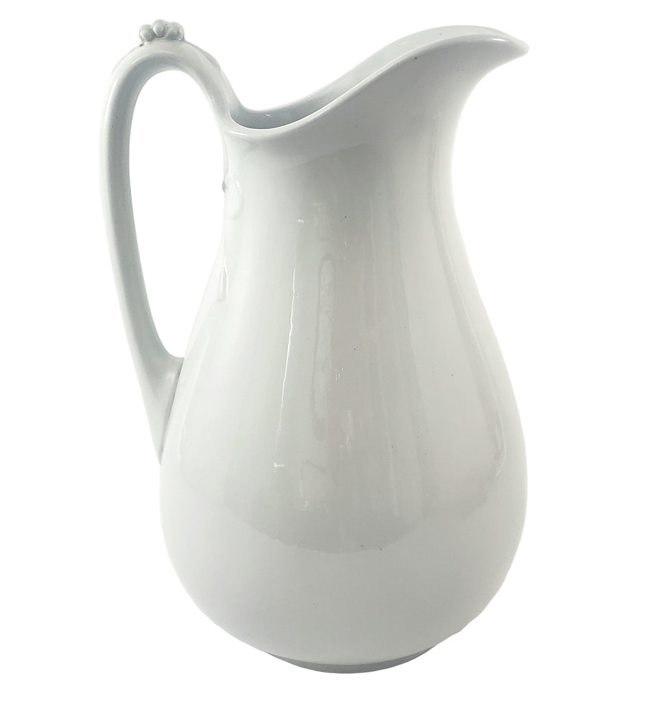 Description: Bring timeless elegance to your home décor with this charming White Victorian Ironstone Pitcher from the late 1800s. Crafted by Burgess & Goddard, Staffordshire, England, it features a smooth white surface with a decorative raised thumb rest and elegant embossed beaded bow and tassel motif behind the handle. Standing 12 ¼ inches tall, its a simple yet beautiful pitcher which blends nicely with a chic farmhouse or cottagecore décor.