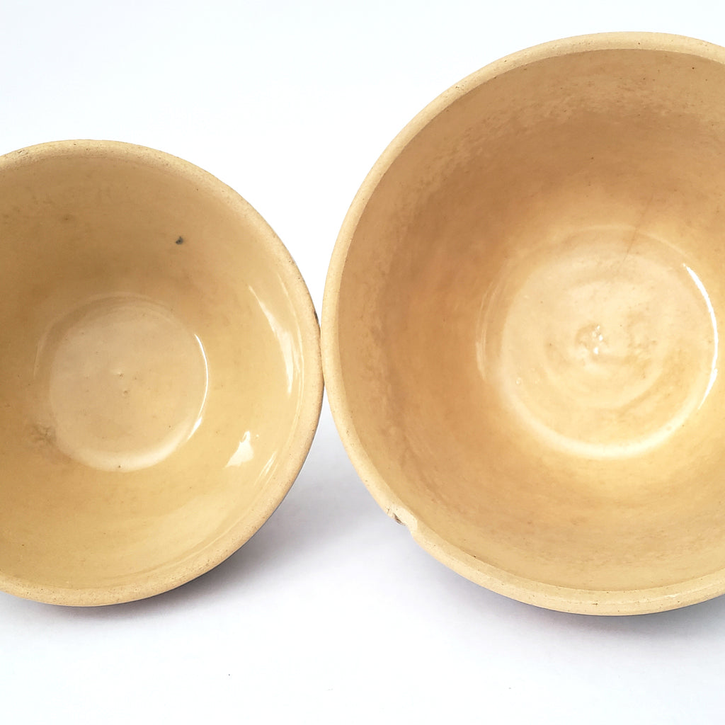 Condition: Previously owned - used. Condition is commensurate with age, use and material. Crazing, chips, discoloration and hairline cracks on most, moreso on larger bowl. Bowls still appear strong. For decorative purposes only. Refer to individual piece condition under dimensions and photographs.