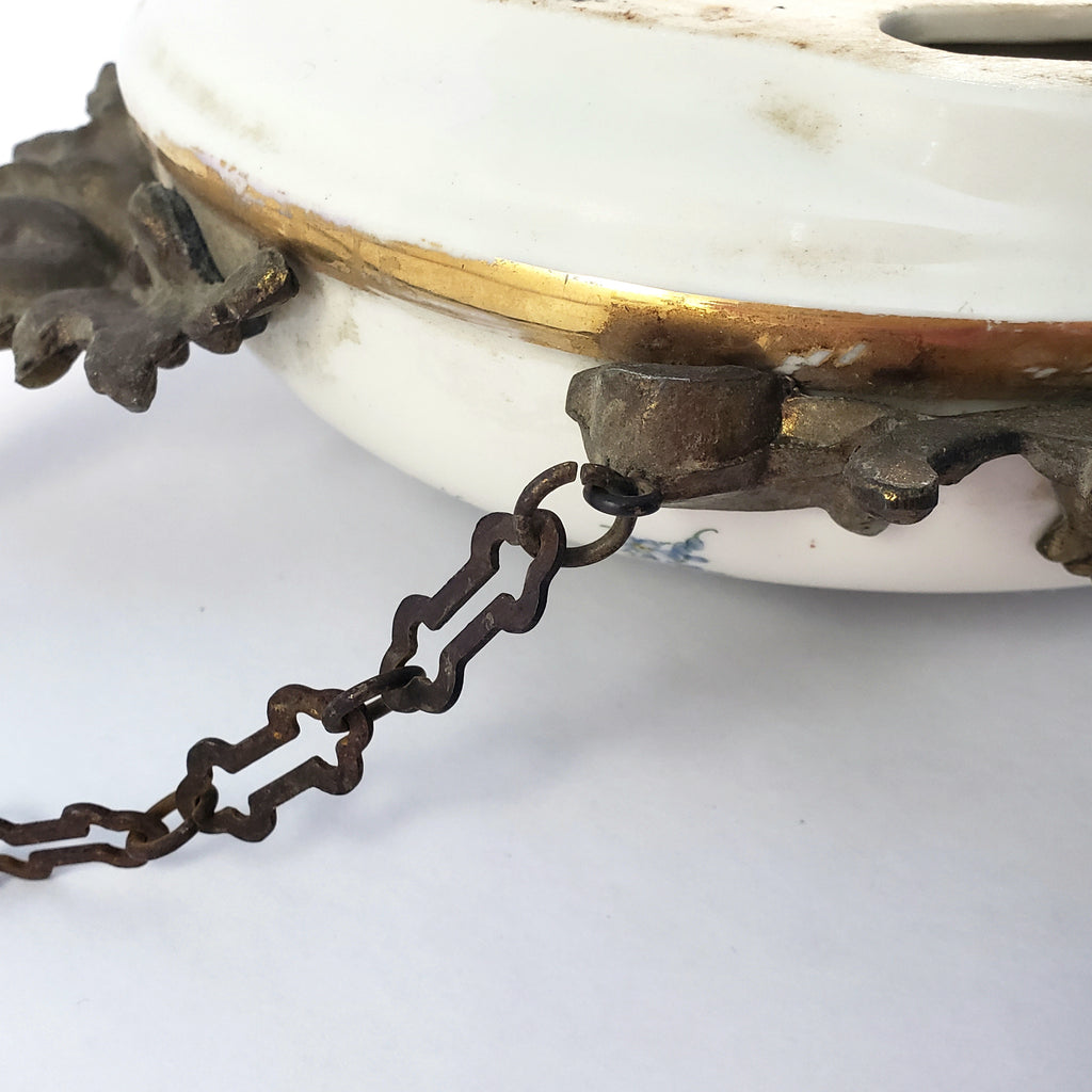 Antique Victorian Hand Painted Porcelain 8 Day Wall Clock with Original Chain