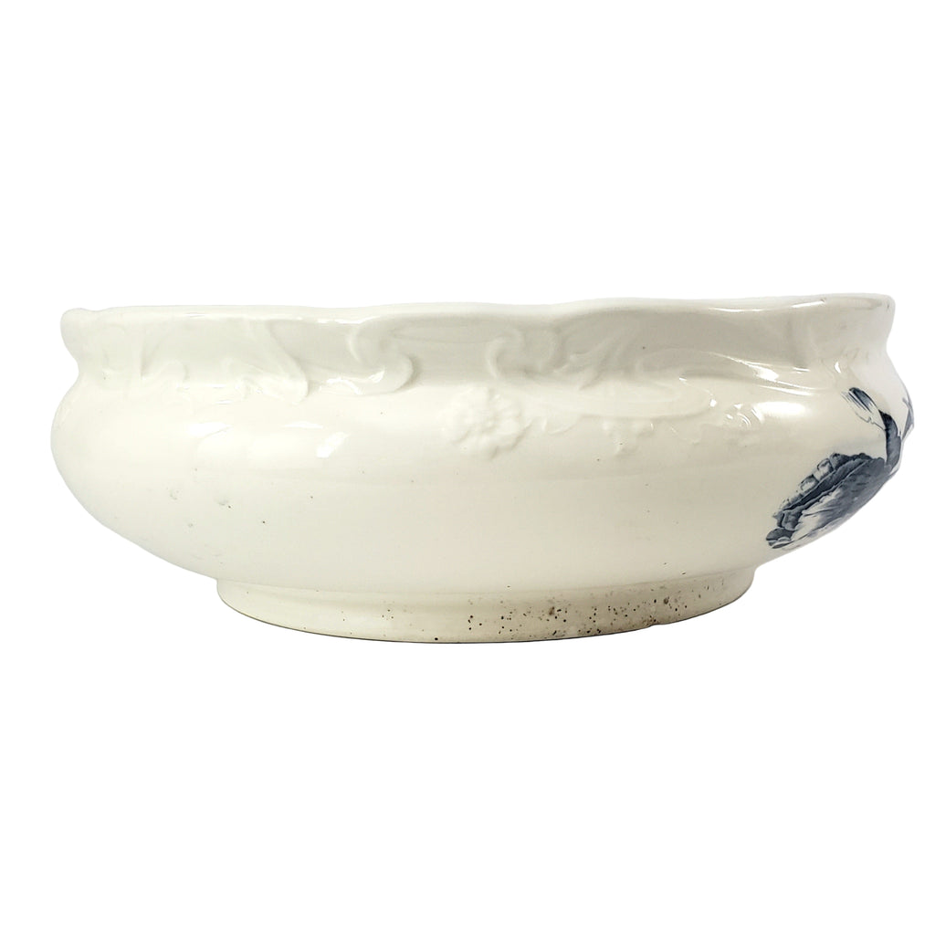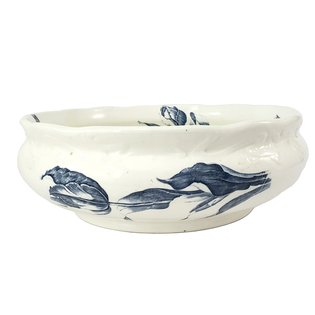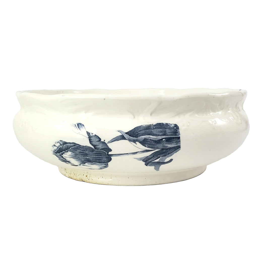 Antique Ceramic Wash Bowl Basin Blue Floral 13 1/2"