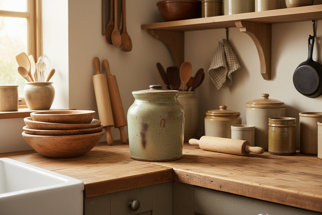 Antique Salt Glazed Stoneware Storage Crock with Lid 1 Quart