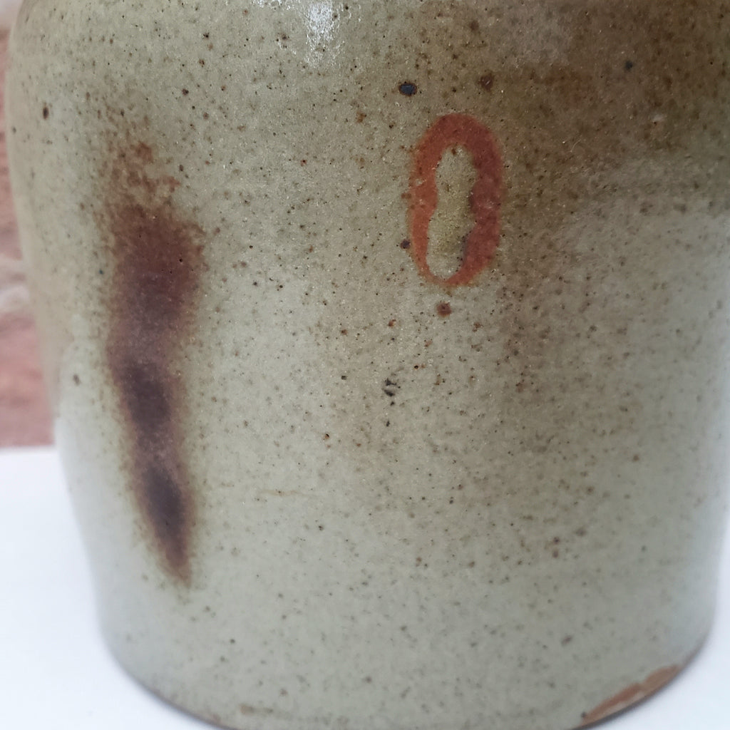 Product Description: This Salt Glazed Stoneware Crockery Jar features loads of character. In cylinder form, it features interior and exterior glaze showcasing natural variations and patina. Standing 5 ½ inches tall with a 4 ¾ inch base diameter, its perfectly sized for displaying on countertop or shelf display. The salt-glaze finish gives the jar its own unique personality, making it an ideal accent for farmhouse, cottage, or eclectic home décor.