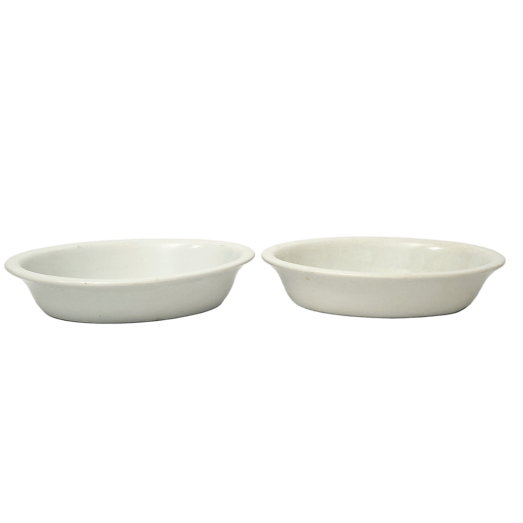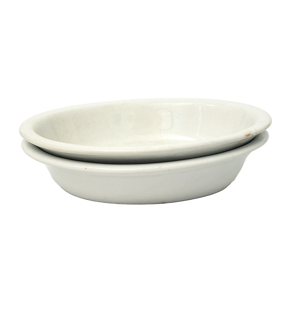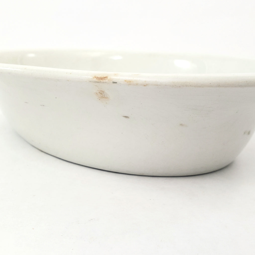 Description:  Add authentic vintage appeal to your home décor with this pair of Antique White Ironstone Vegetable Dishes by Johnson Brothers. With its oval form, these vintage pieces will showcase nicely for decorating purposes.  Each piece bears some natural aging and signs of use-with one retaining a slightly brighter white surface than the other. A pair which will add vintage charm to your home.