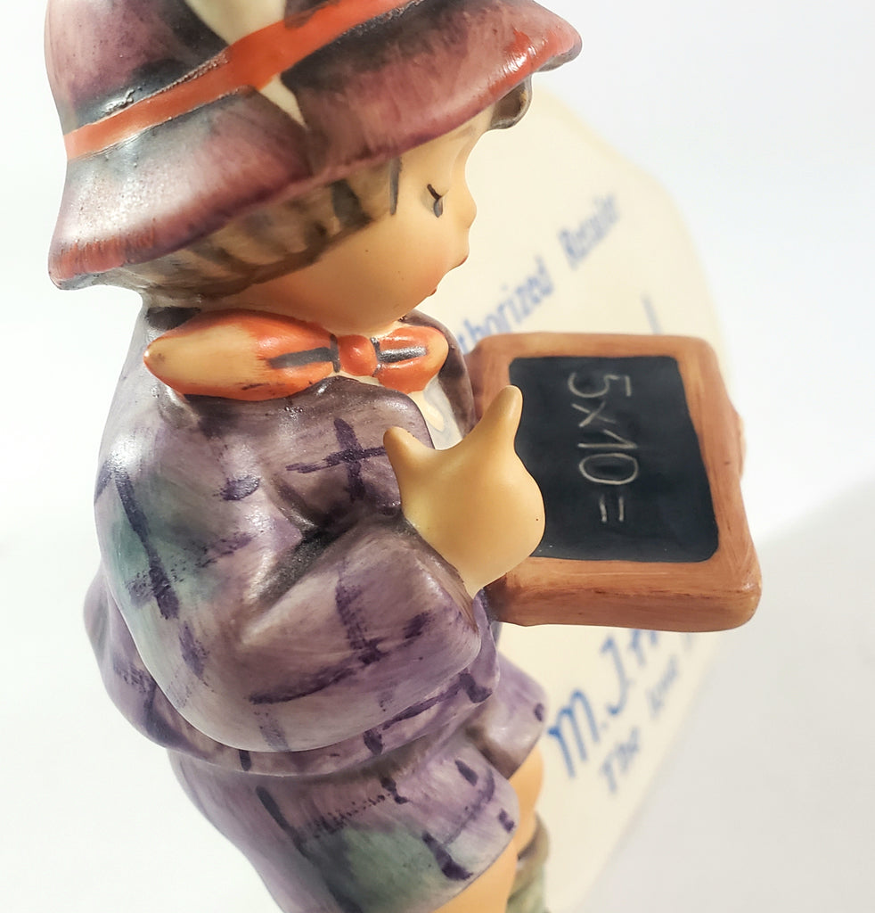 Product Description: Discover the charm of this authentic Goebel Hummel "School Boy" authorized Hummel Plaque, a treasured piece from the 1980s. Standing 5 inches tall, this collectible captures a moment of youthful concentration as the boy puzzles over his math. It bears the distinctive M.J. Hummel impressed signature on the back along with the master painter’s initials on the underside guaranteeing it authenticity and quality craftsmanship. An excellent addition to a Goebel - Hummel collection.