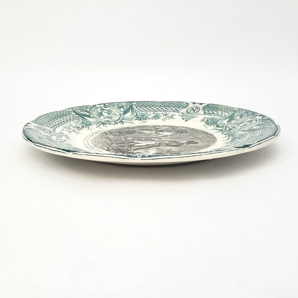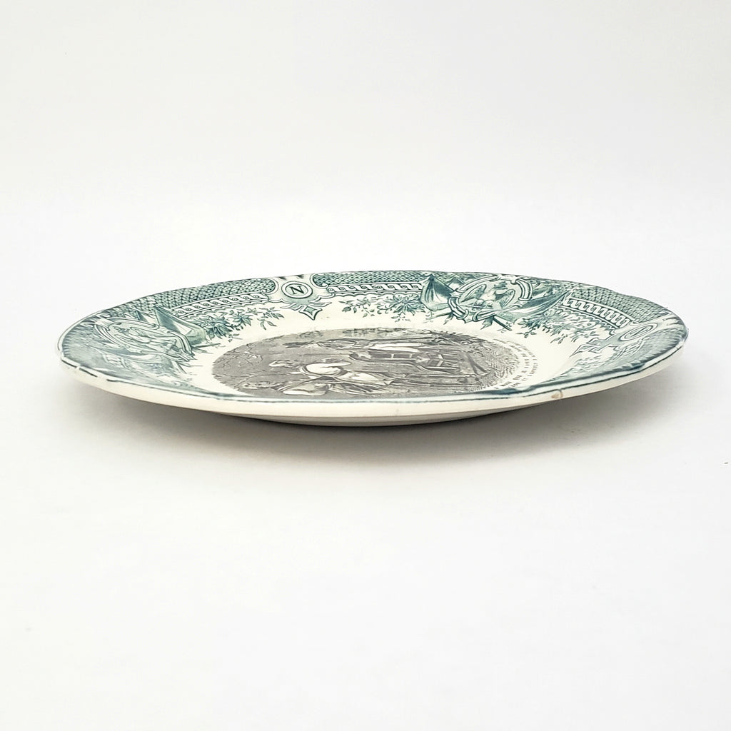 Historical French Black & Green Transferware 7 1/2" Plate by Digoin & Sarreguemines