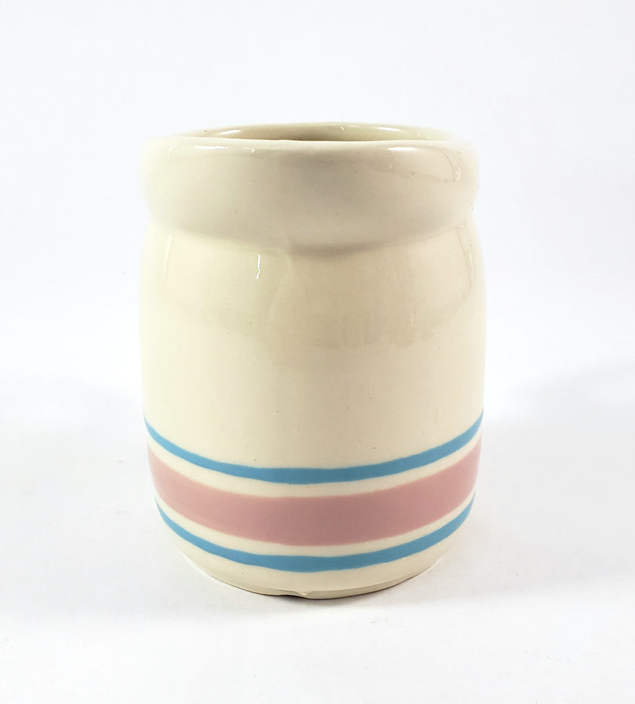 McCoy Creamer Pink and Blue Bands Stone Craft USA 8 oz.