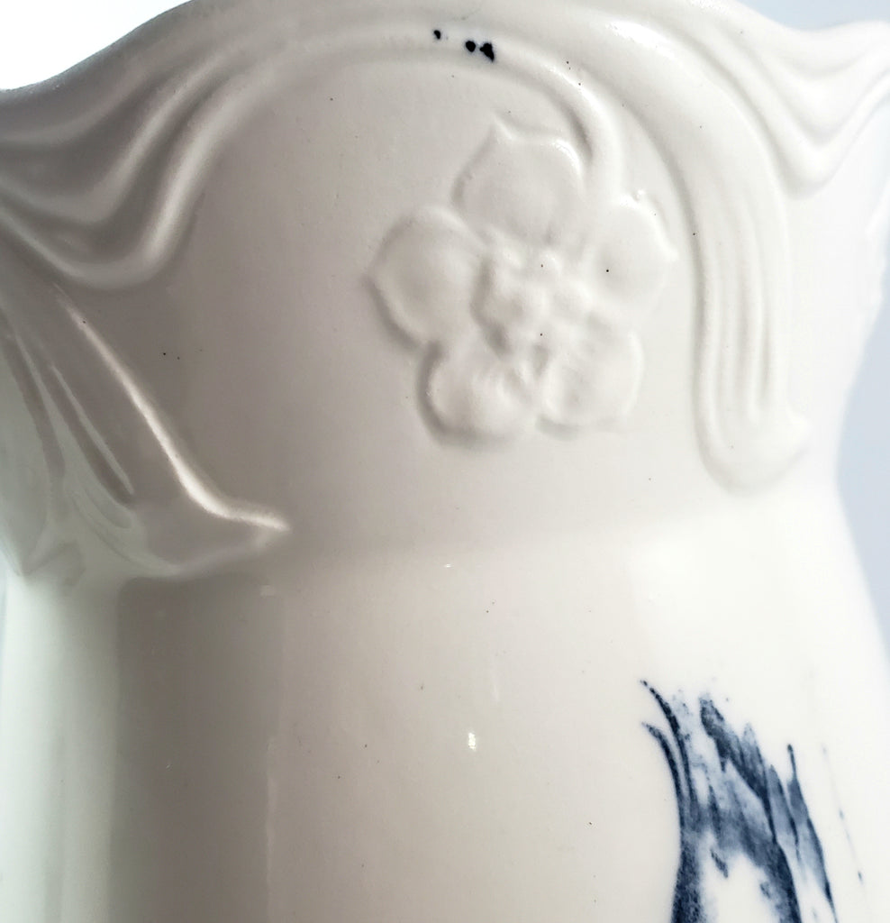 Vintage Blue & White Ceramic Pitcher Botanical Tulips