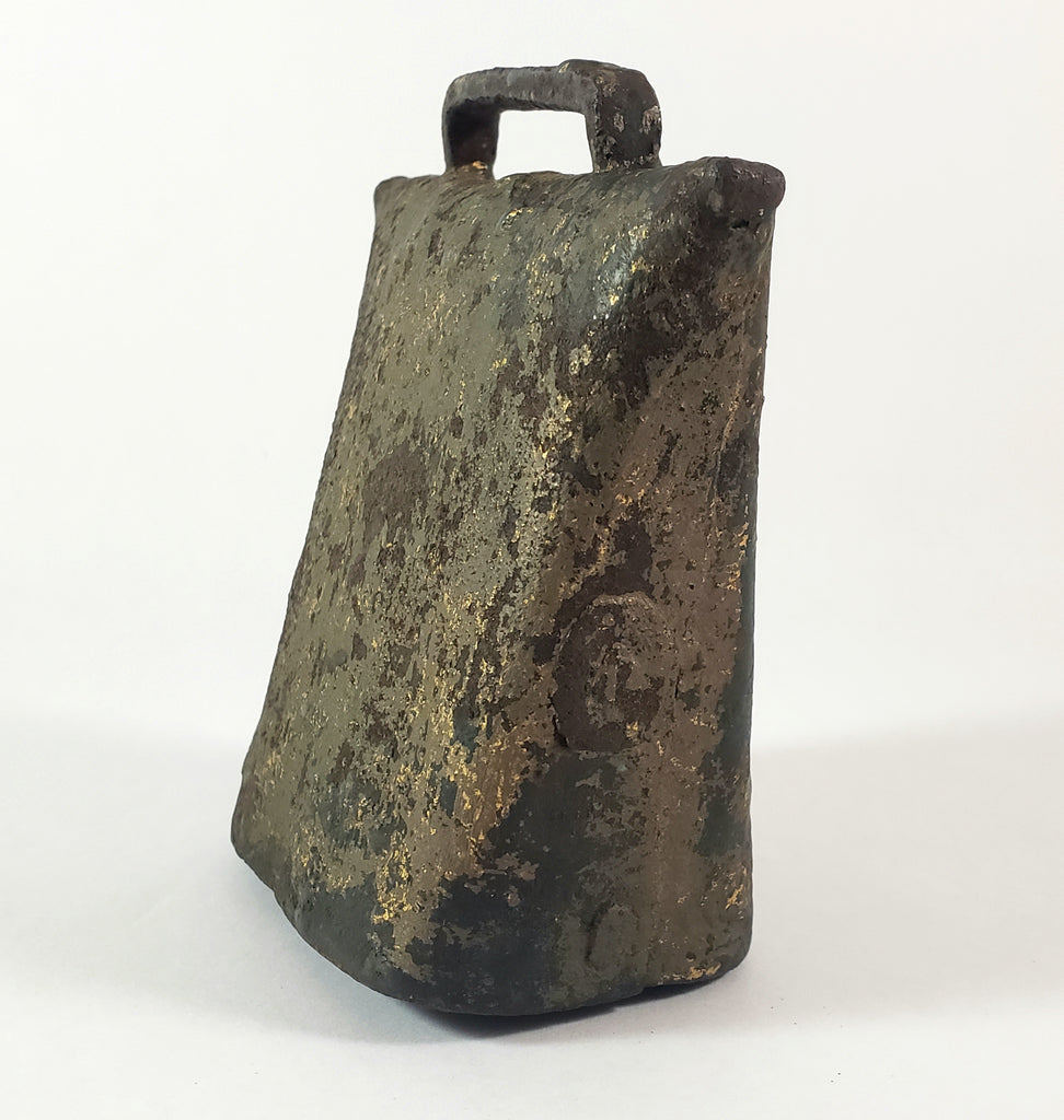 Product Description: Discover authentic 19th century craftsmanship in this remarkable wrought iron cow bell. This blacksmith creation showcases authentic craftsmanship with its distinctive folded construction, heavy, hand-hammered clapper and hand-riveted details. The sound of this bell is a deep, "clunking" tone made from the large, heavy iron clapper. The original aged patina tells a story of genuine farmstead bells which were hung around the neck of farm cows. A perfect collectible for those who appreciate weathered beauty of farmstead rural life.