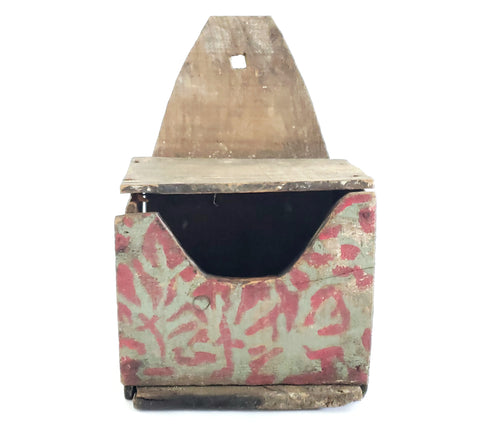 Primitive Wall Box with Original Blue-Gray and Red Paint