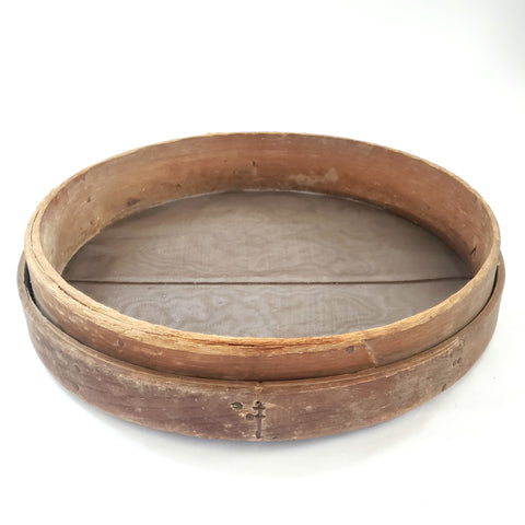 Large 20" Antique Wooden Grain Sieve - Rustic Farmhouse Accent