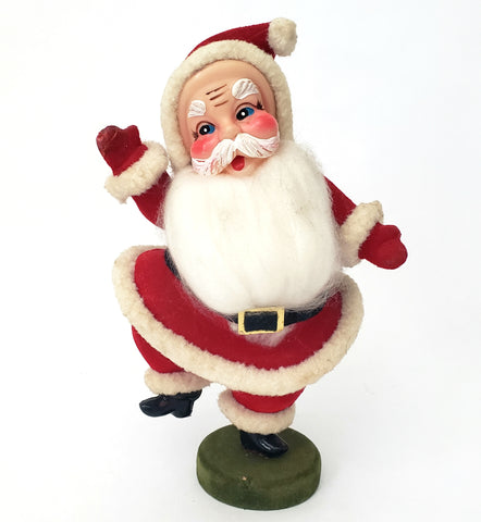 Vintage Santa Claus Figurine Red Flocked Suit & Hat White Trim Plastic Face