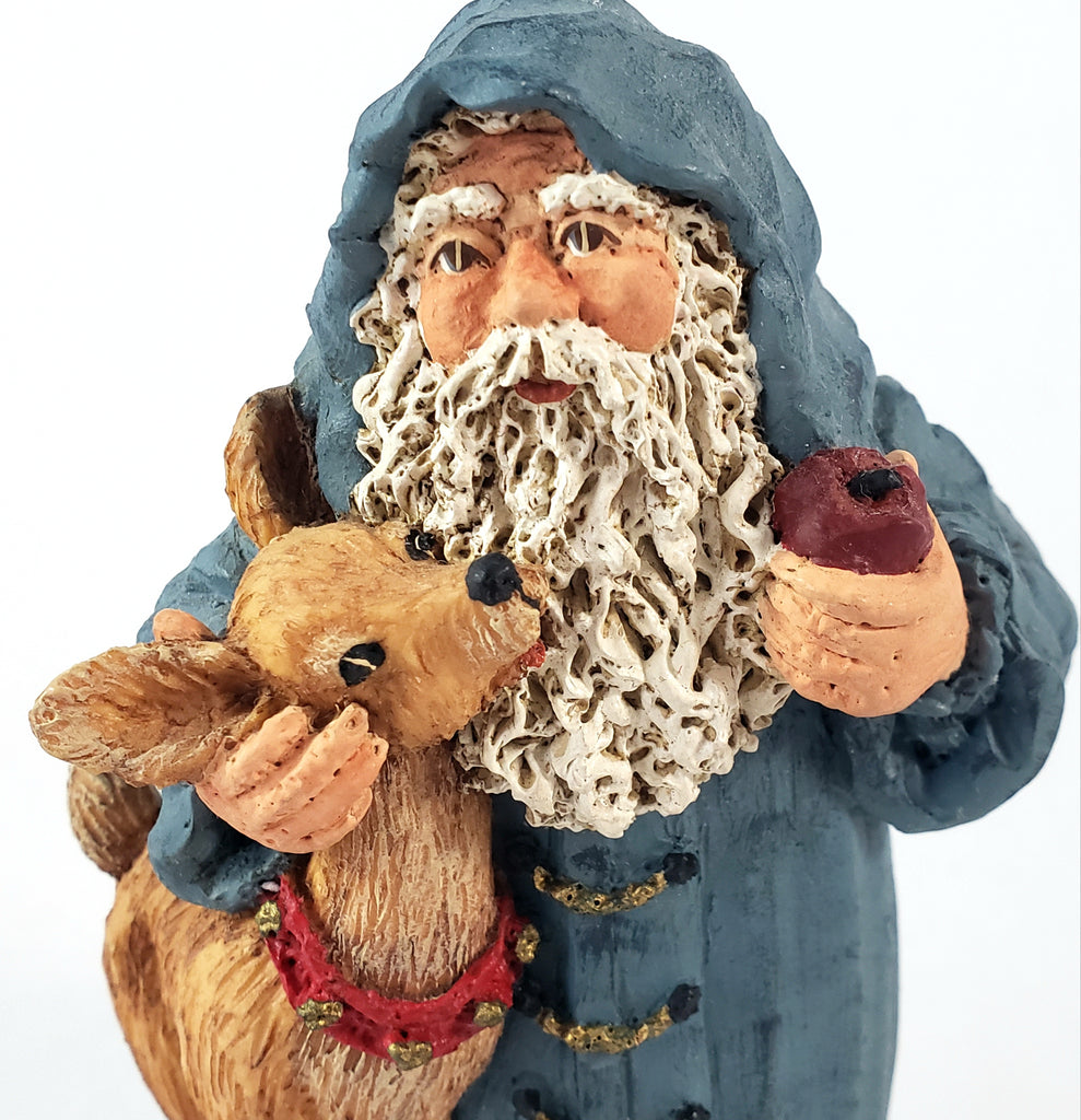 Product Description: This enchanting June McKenna collectible Christmas Figurine, “Christmas Treat” depicts Santa with his arm embracing one of his reindeers while holding an apple in the other hand. Expertly hand-casted and hand-painted, it features well-defined characteristics that provide that old-world charm. Equipped with a slotted hole on the back and head, it can be displayed as an ornament or figurine.