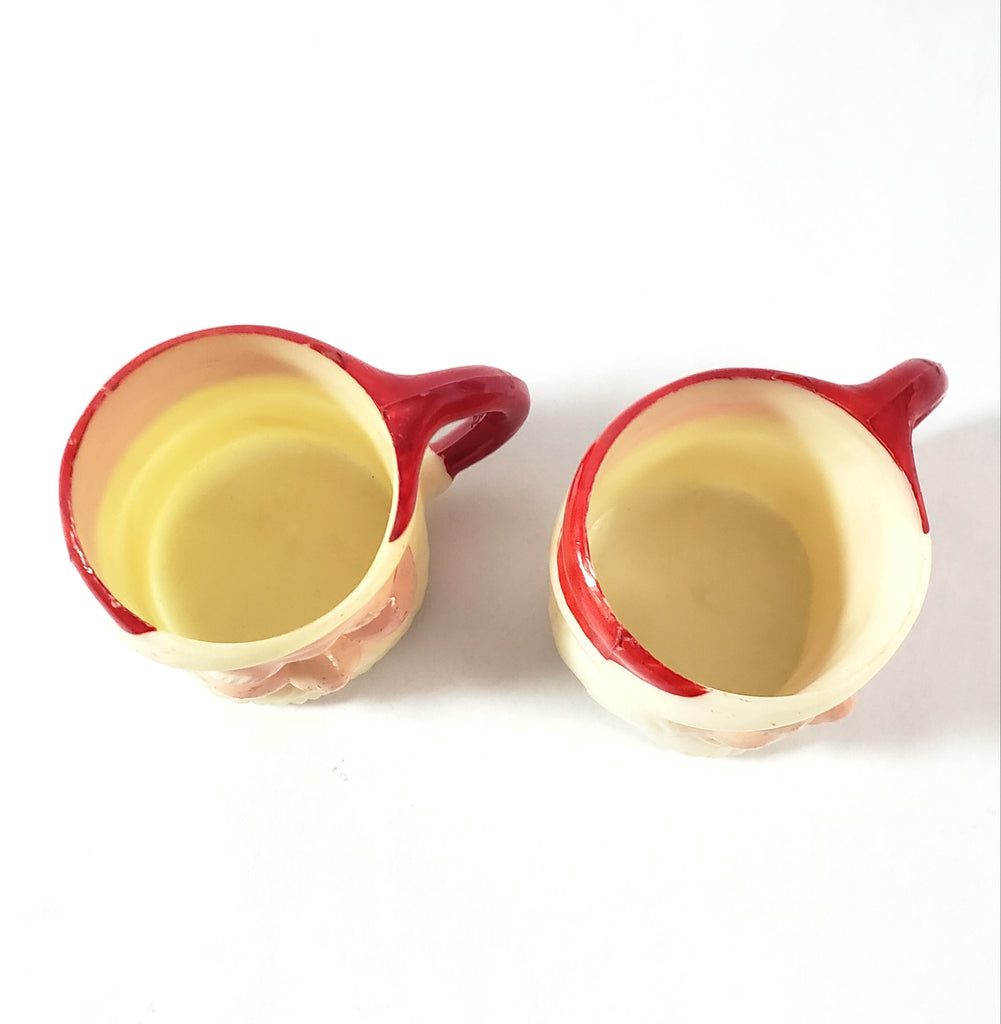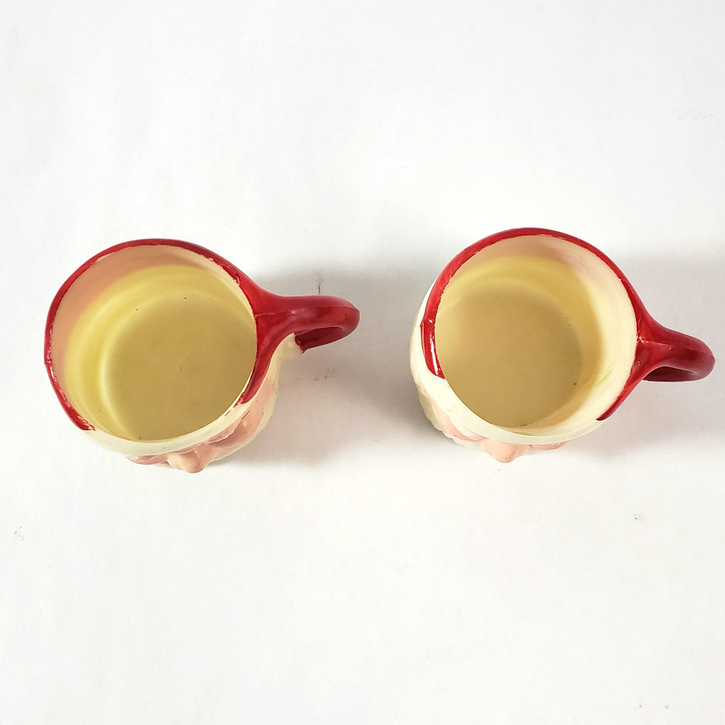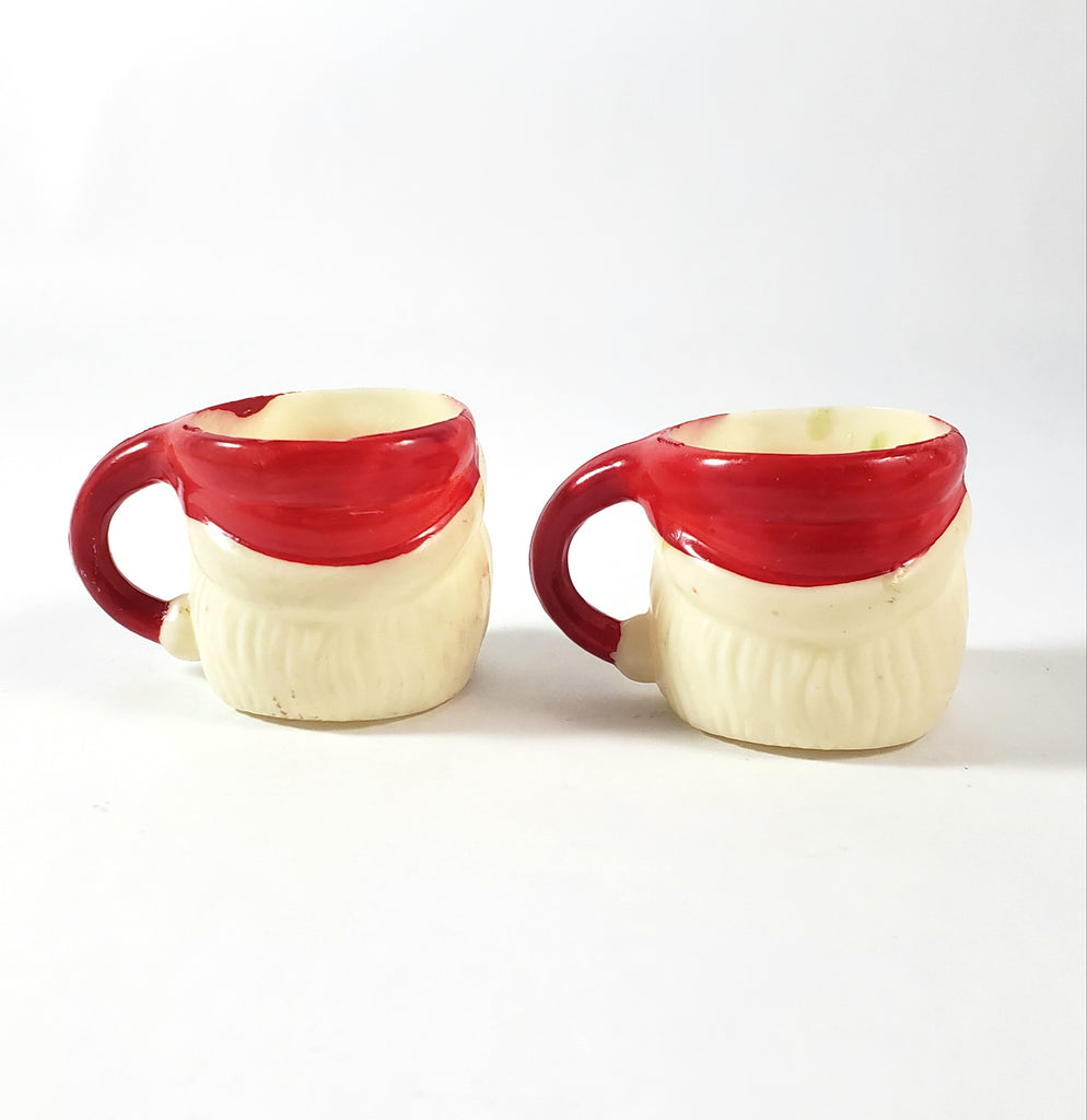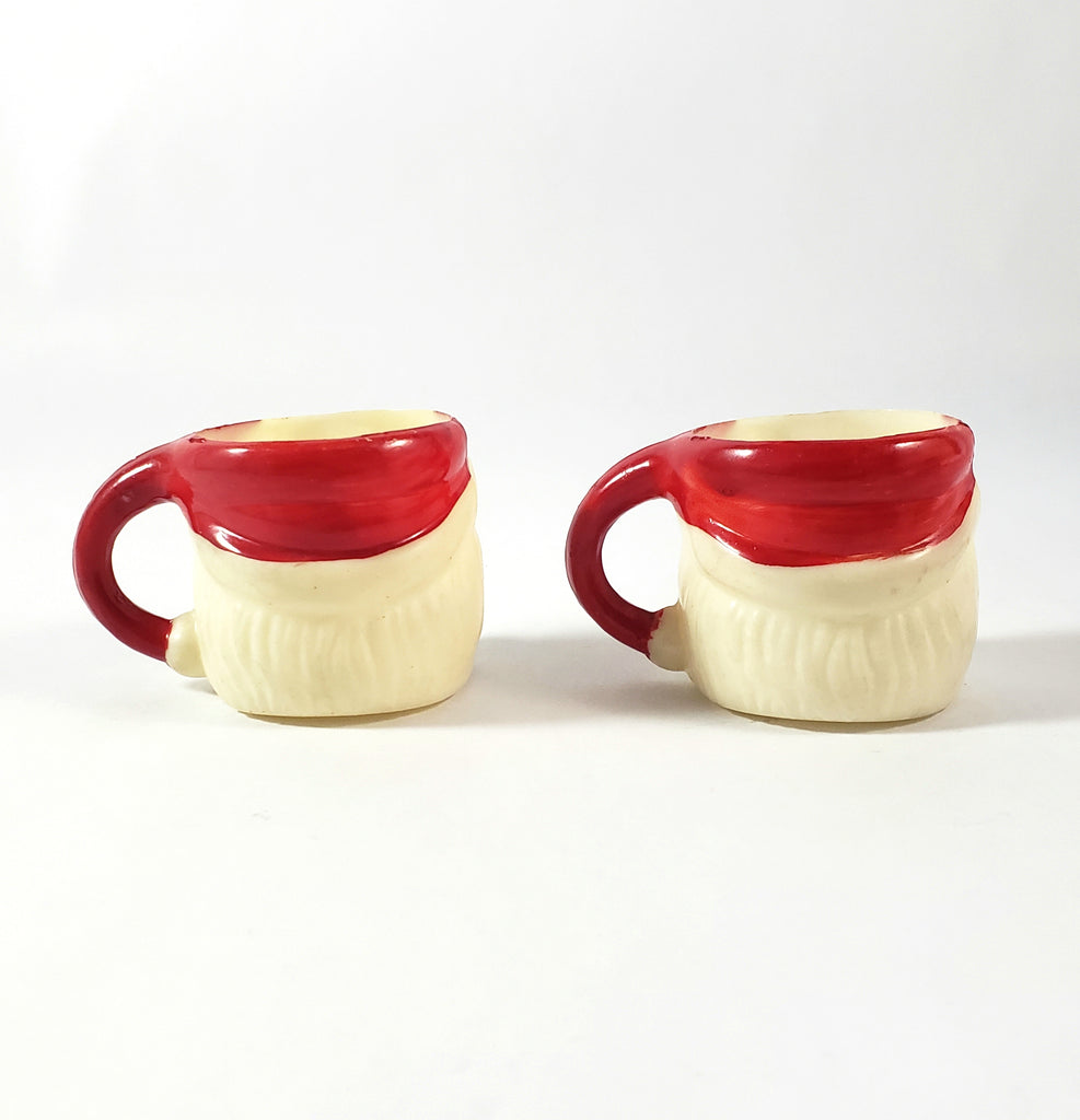 Description: Add this Miniature Winking Santa Claus Mug Set of 4 to your whimsical holiday décor. Each measuring 1 ½ inches tall, featuring a cheerful winking Santa face with a red hat & handle, white beard and a rosy pink face, these collectibles add a nostalgic and festive touch to holiday celebrations.