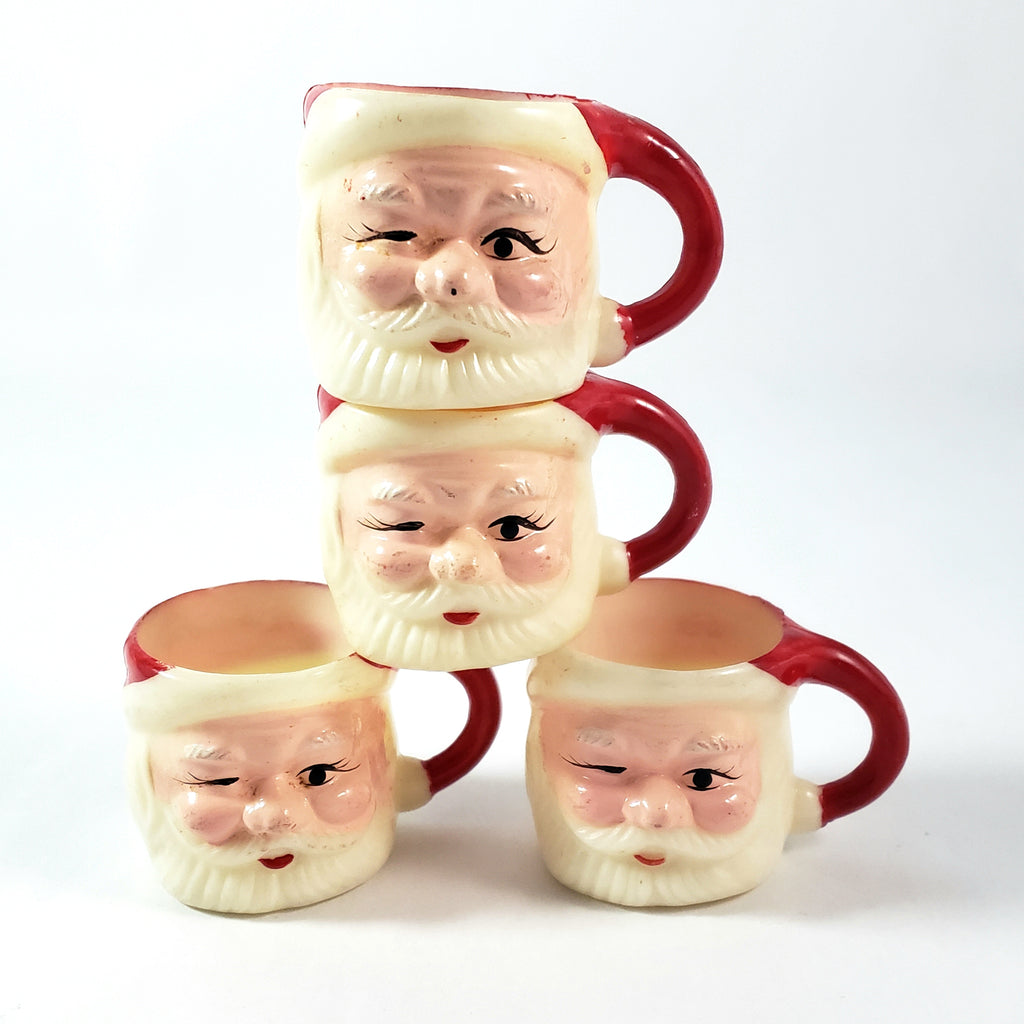 Vintage Miniature Winking Santa Claus Face Mug Set of 4