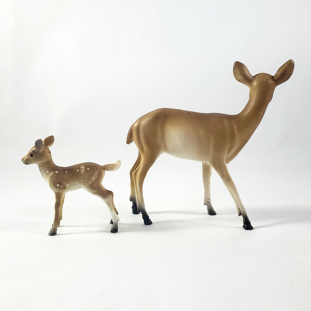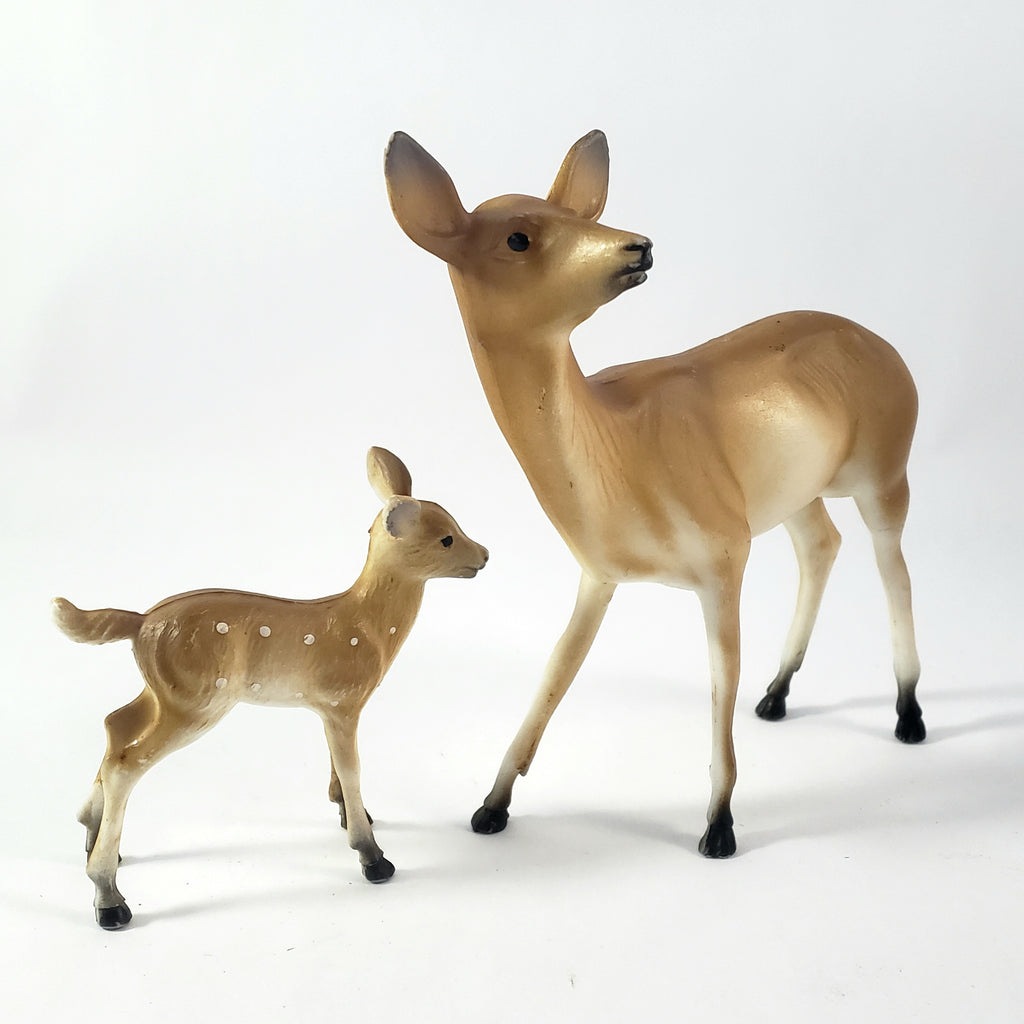 Vintage Deer Doe and Fawn Plastic Figurines Collection of 2