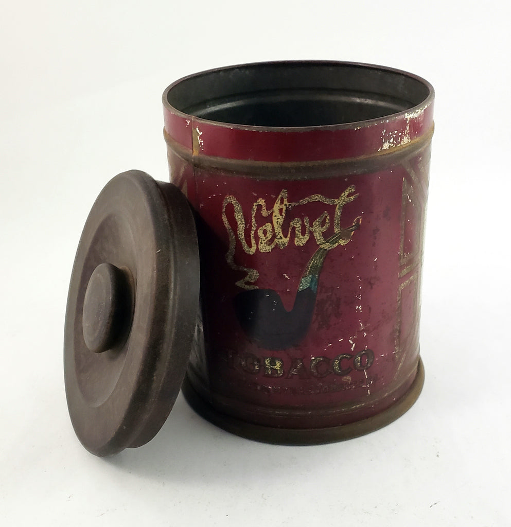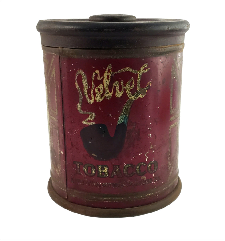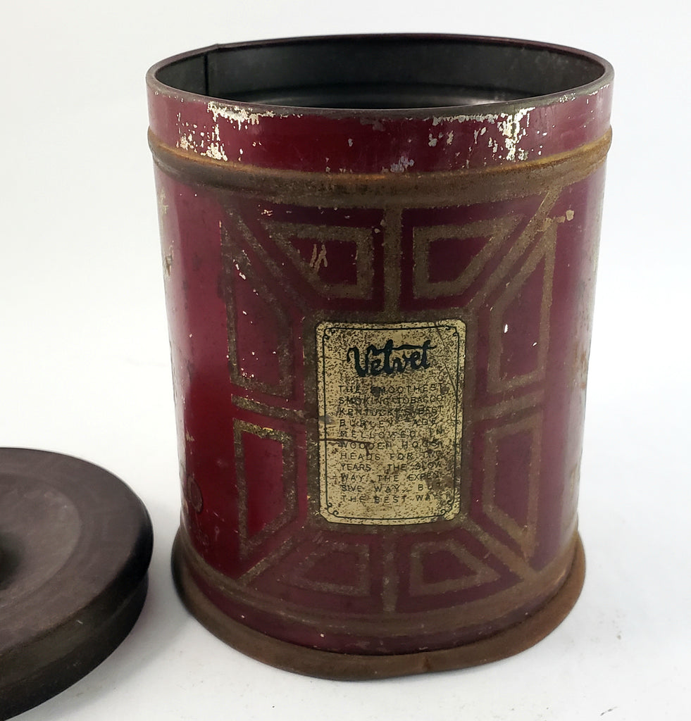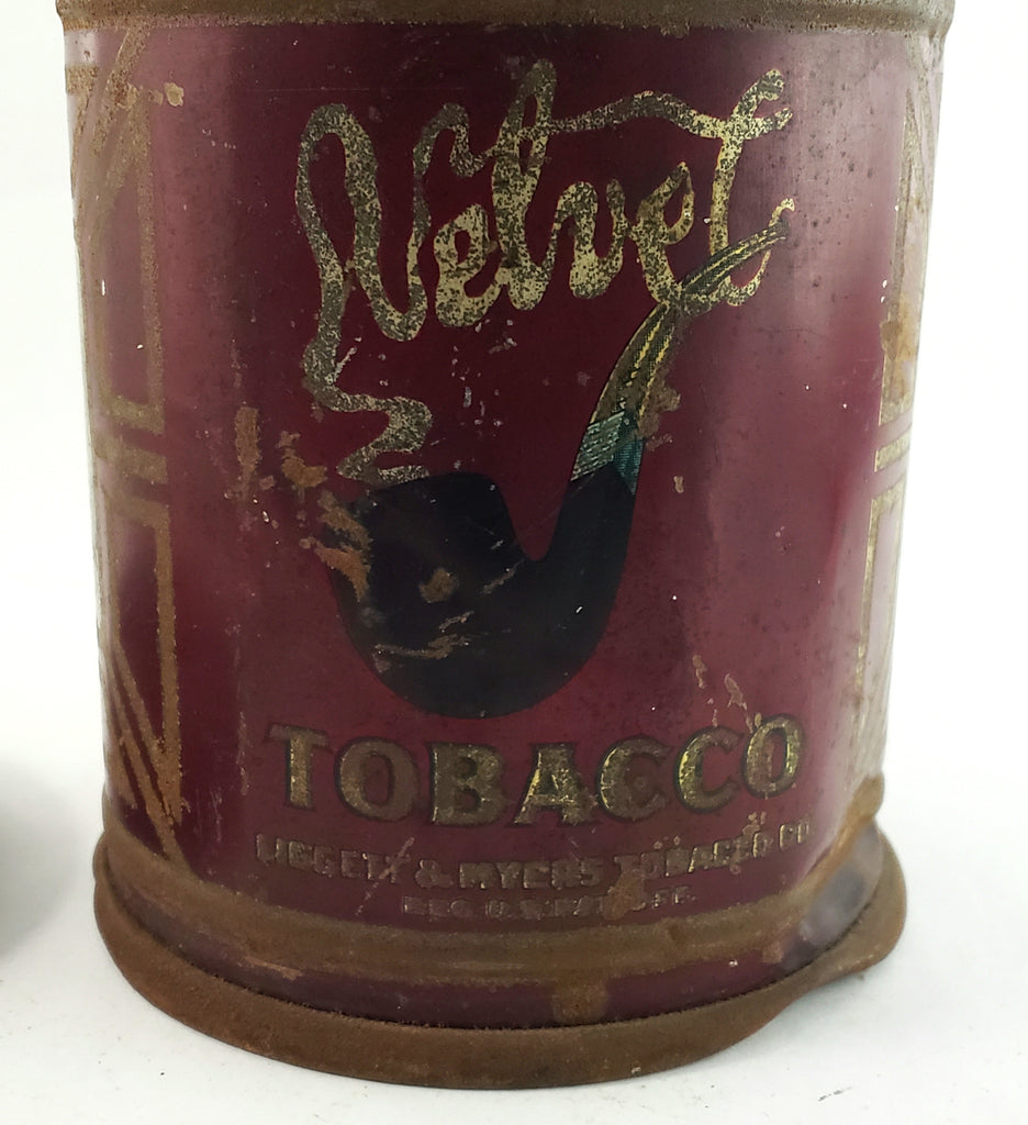 Antique Velvet Tobacco Tin Cylinder Early Smoke Logo by Liggett & Myers