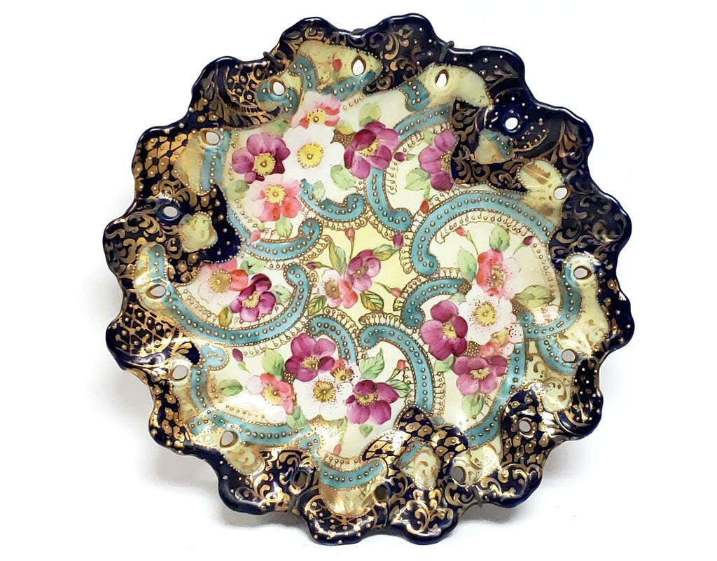 Rare Antique Hand-Painted Polychrome Beaded Plate w/ Unusual Early Mark