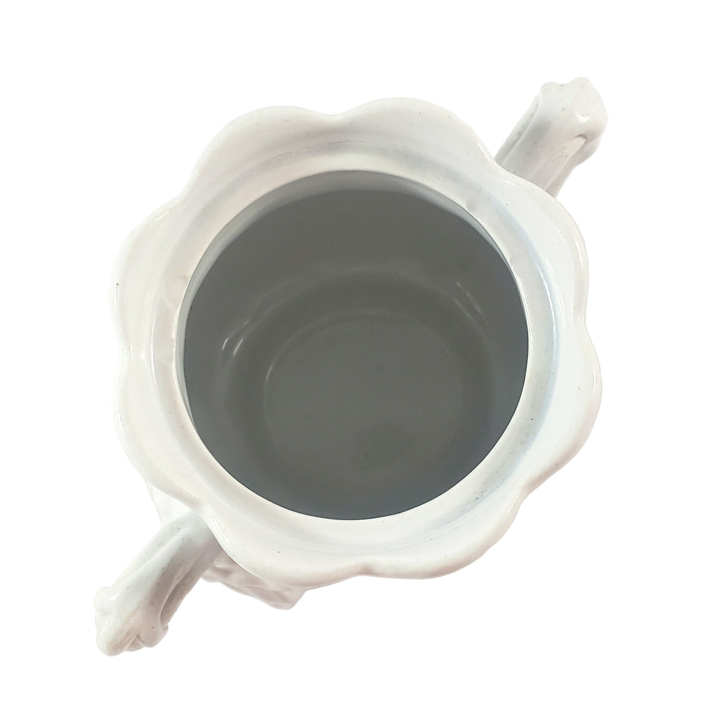 Antique White Ironstone Sugar Bowl with Lid Paneled Grape & Leaf