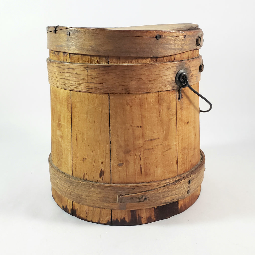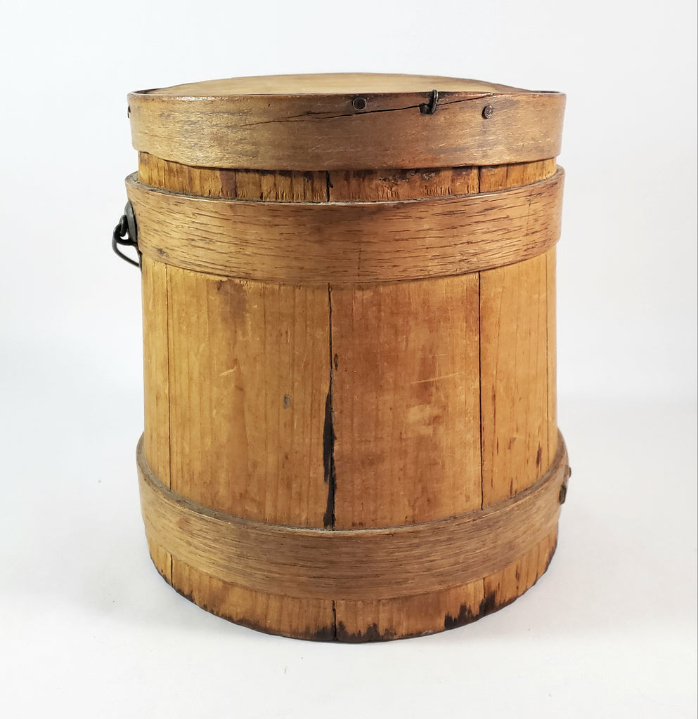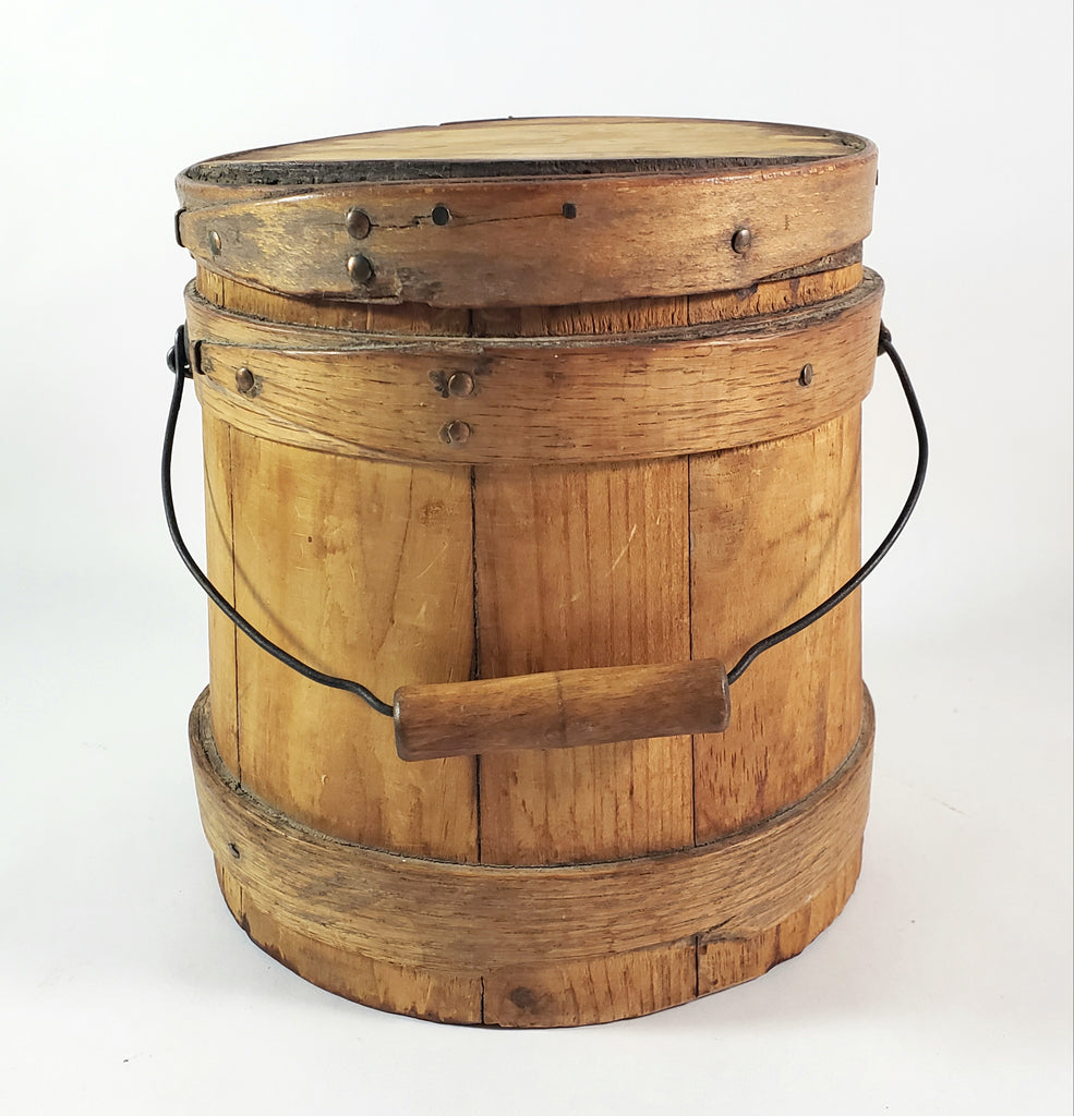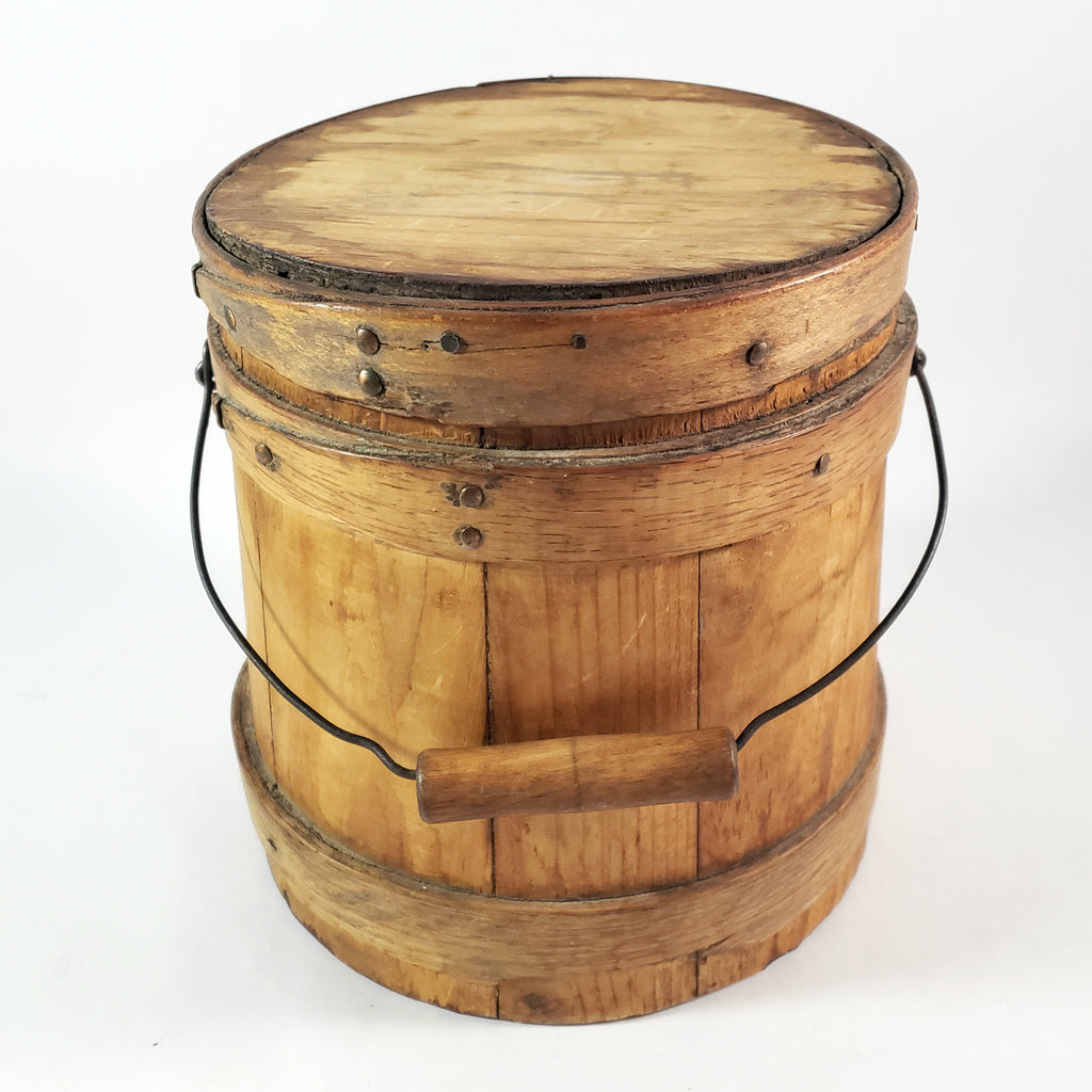 Antique Wooden Firkin Bucket Small 7” Sugar Bucket Lid and Bail Handle Grip