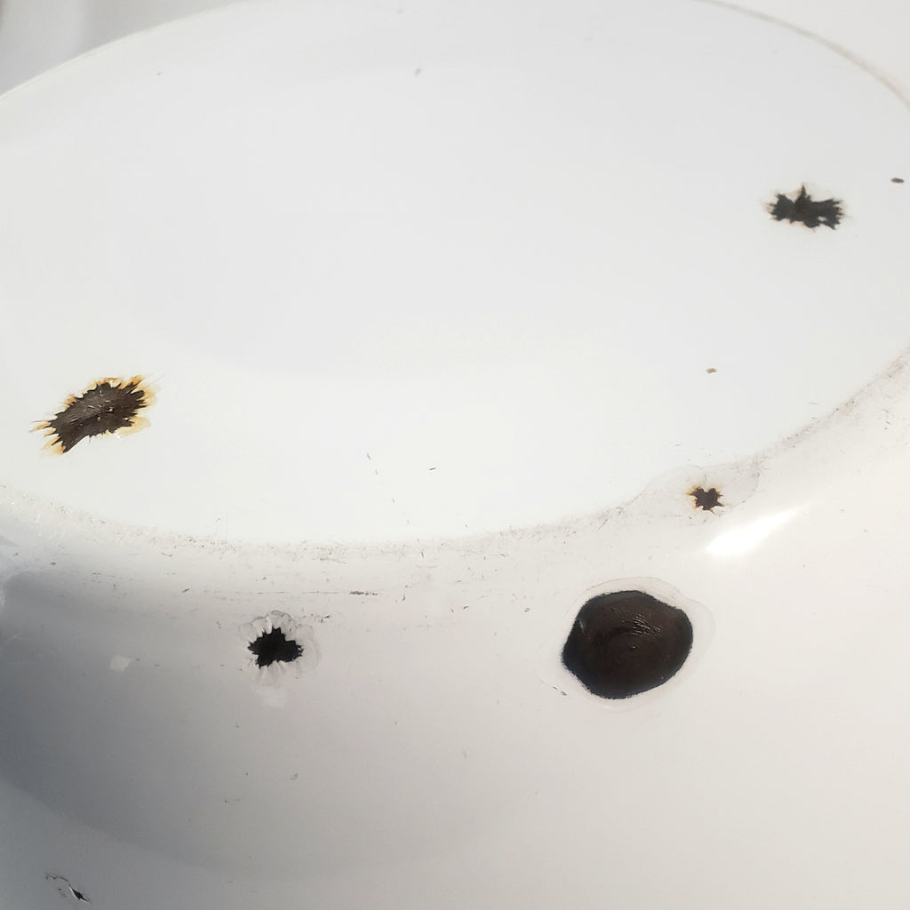 Condition: Previously owned - used. Condition is commensurate with age and use. Early enamel chips on the interior and exterior (as shown). Scattered scratches on body as well as interior bottom. No holes or leaks. Functional as an accent, for decorating purposes.