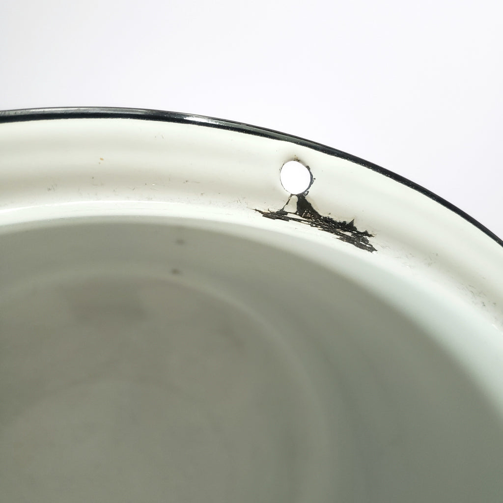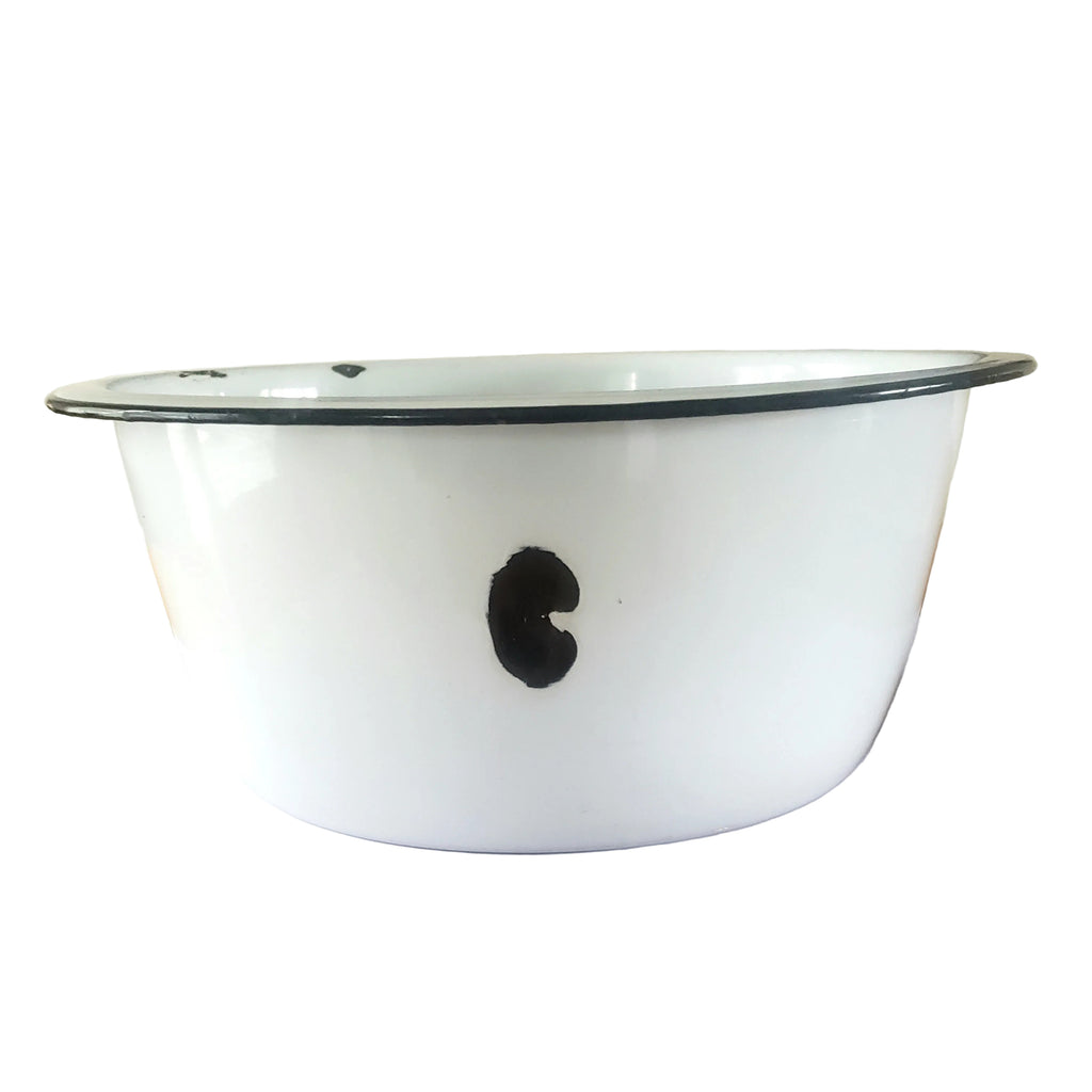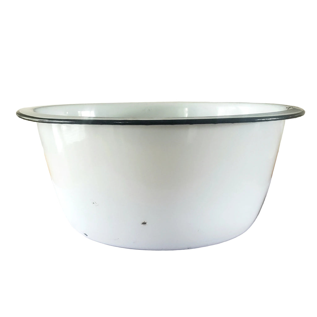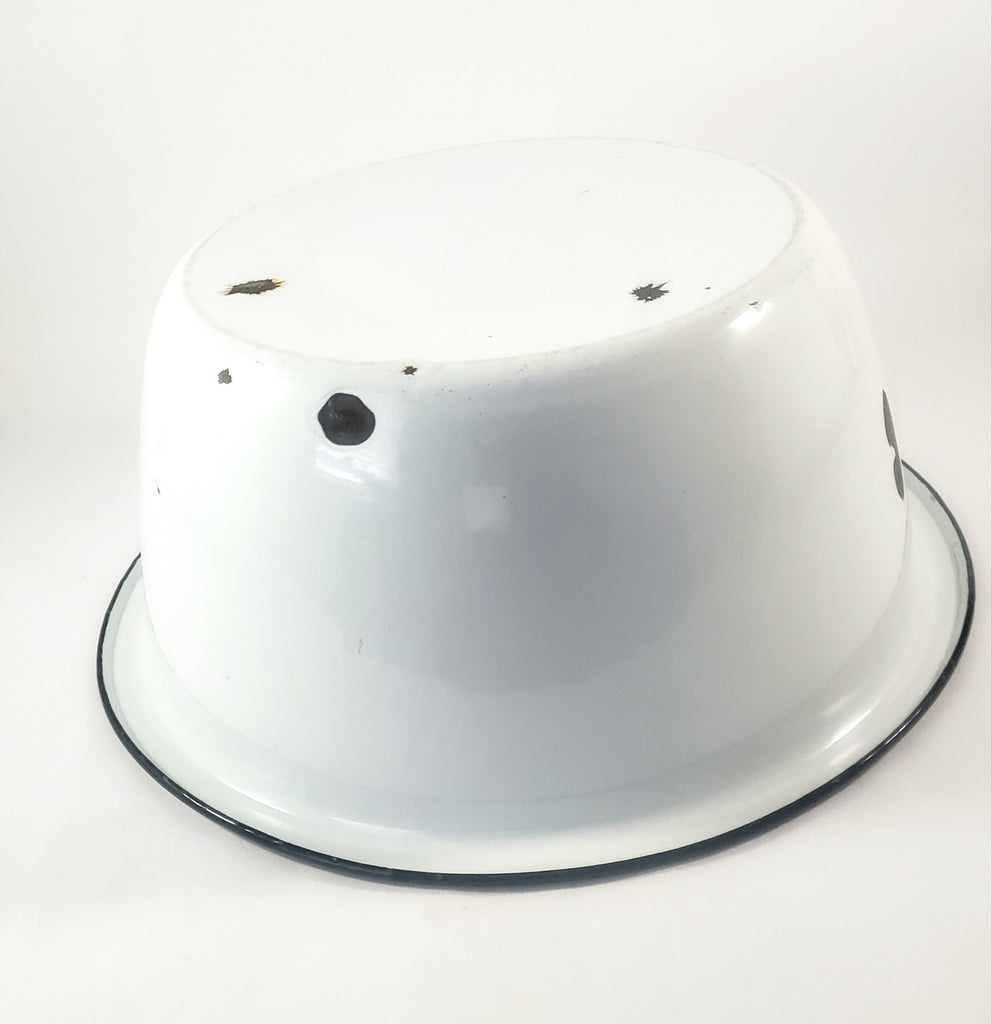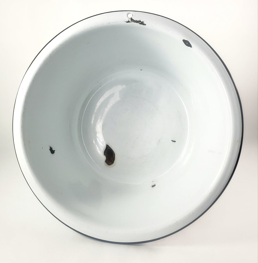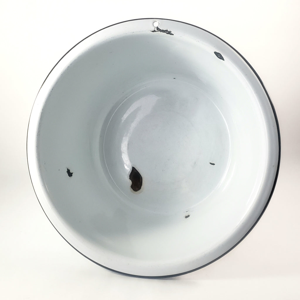 Large Vintage Farmhouse White Enamelware Basin Black Trim